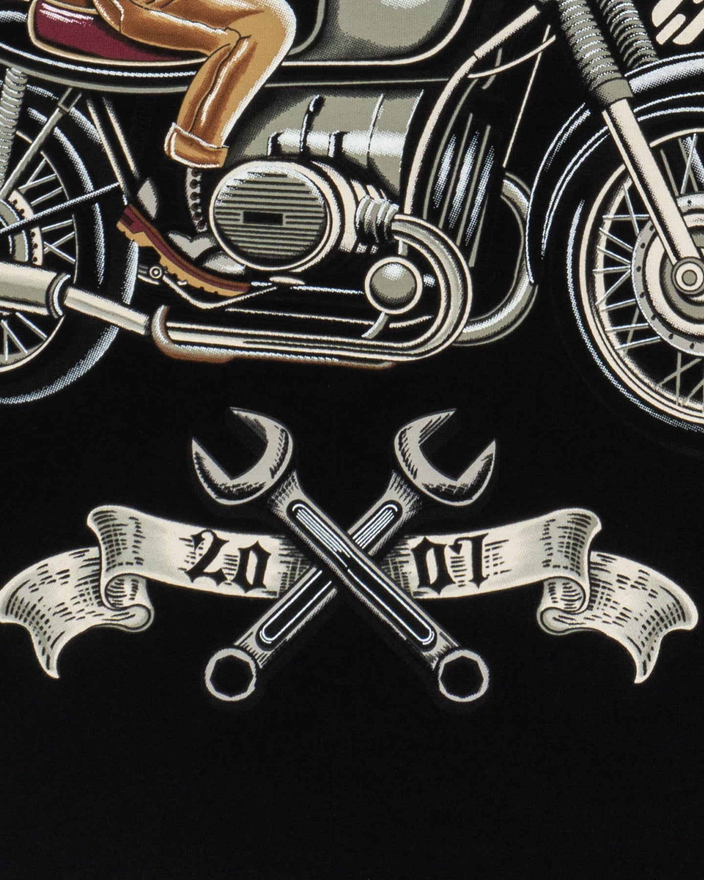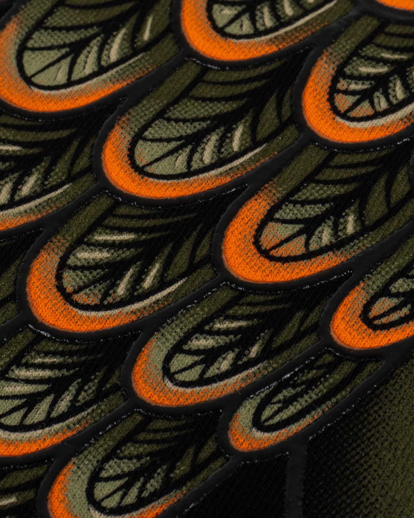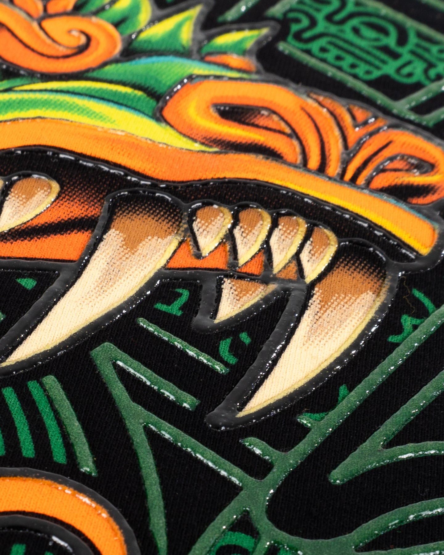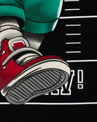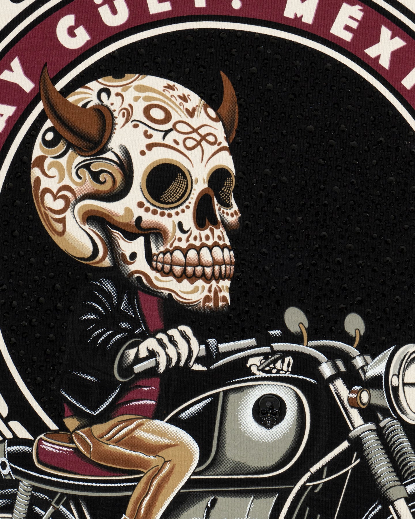 Esta prenda rinde homenaje a la intensidad del fútbol americano en México, personificada en "El Bronco", un guerrero que surge del campo de juego portando los colores nacionales y elementos tradicionales como el decorado de calavera. Su diseño integra un casco con astas y un uniforme clásico sobre un fondo de yardaje, capturando la esencia de quien deja todo en la línea de golpeo bajo el grito de ¡Ay Güey!