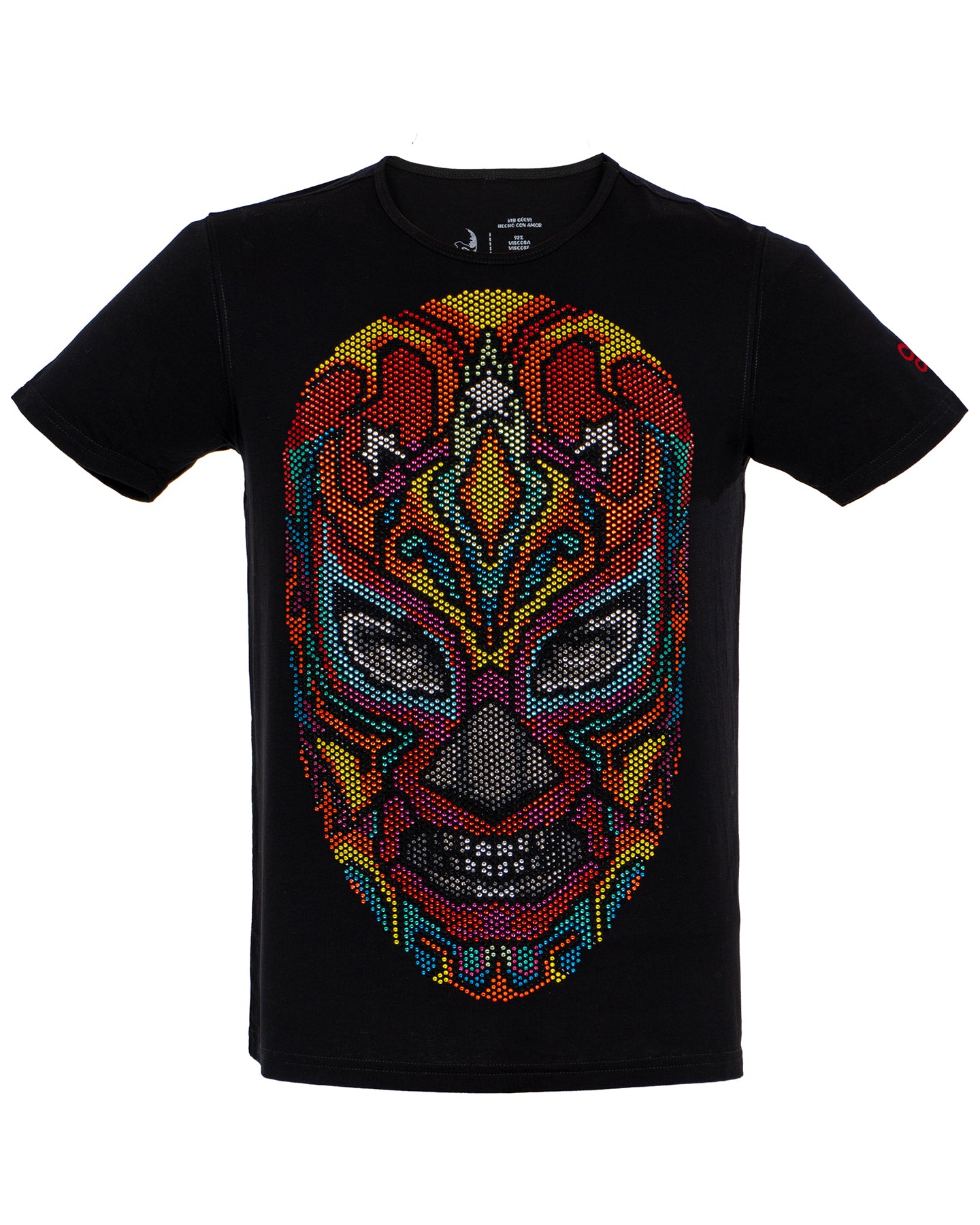 Imagina sentir la adrenalina de la lucha libre con cada movimiento. Nuestra playera de manga corta con pedrería te transportará al ring, permitiéndote lucir como un verdadero campeón.