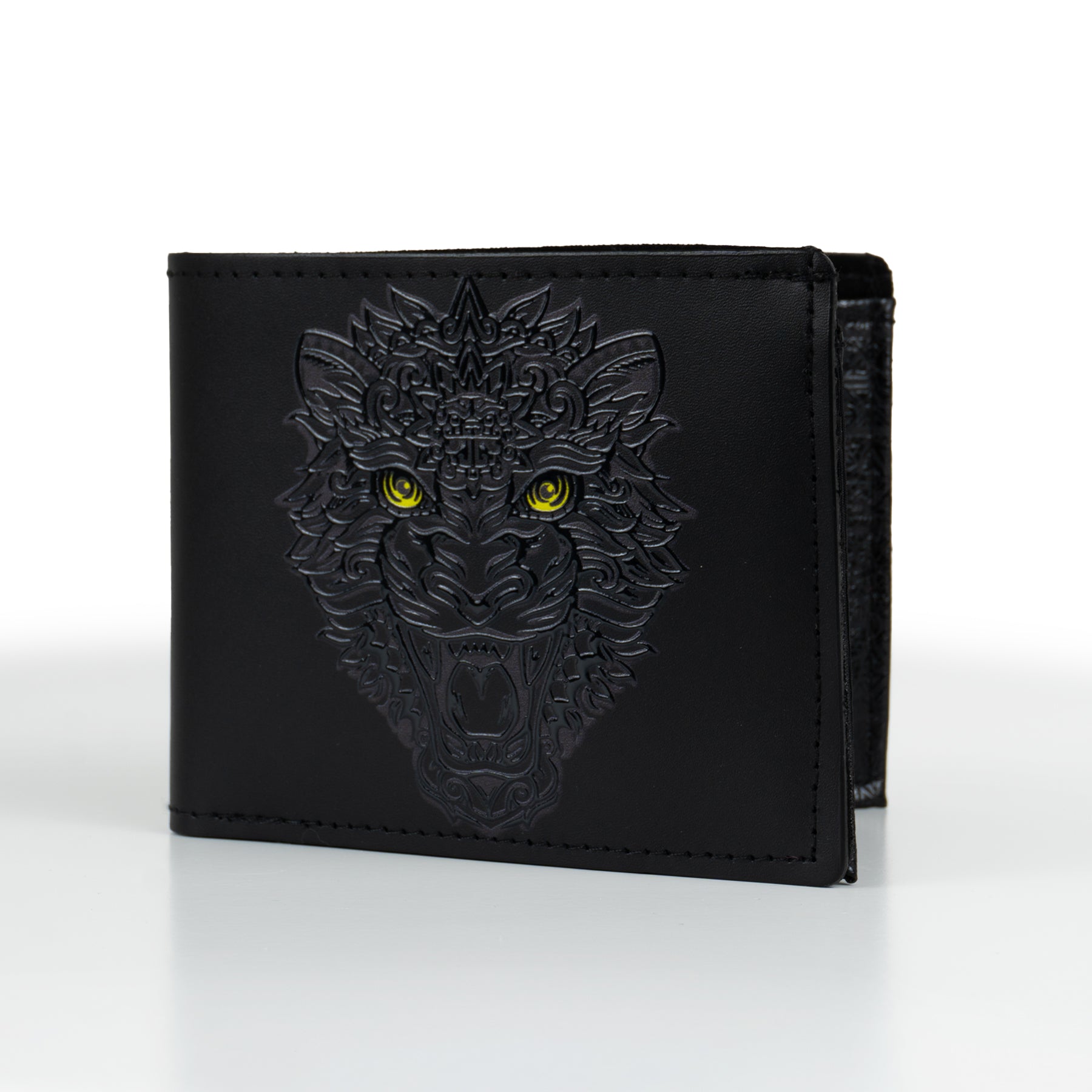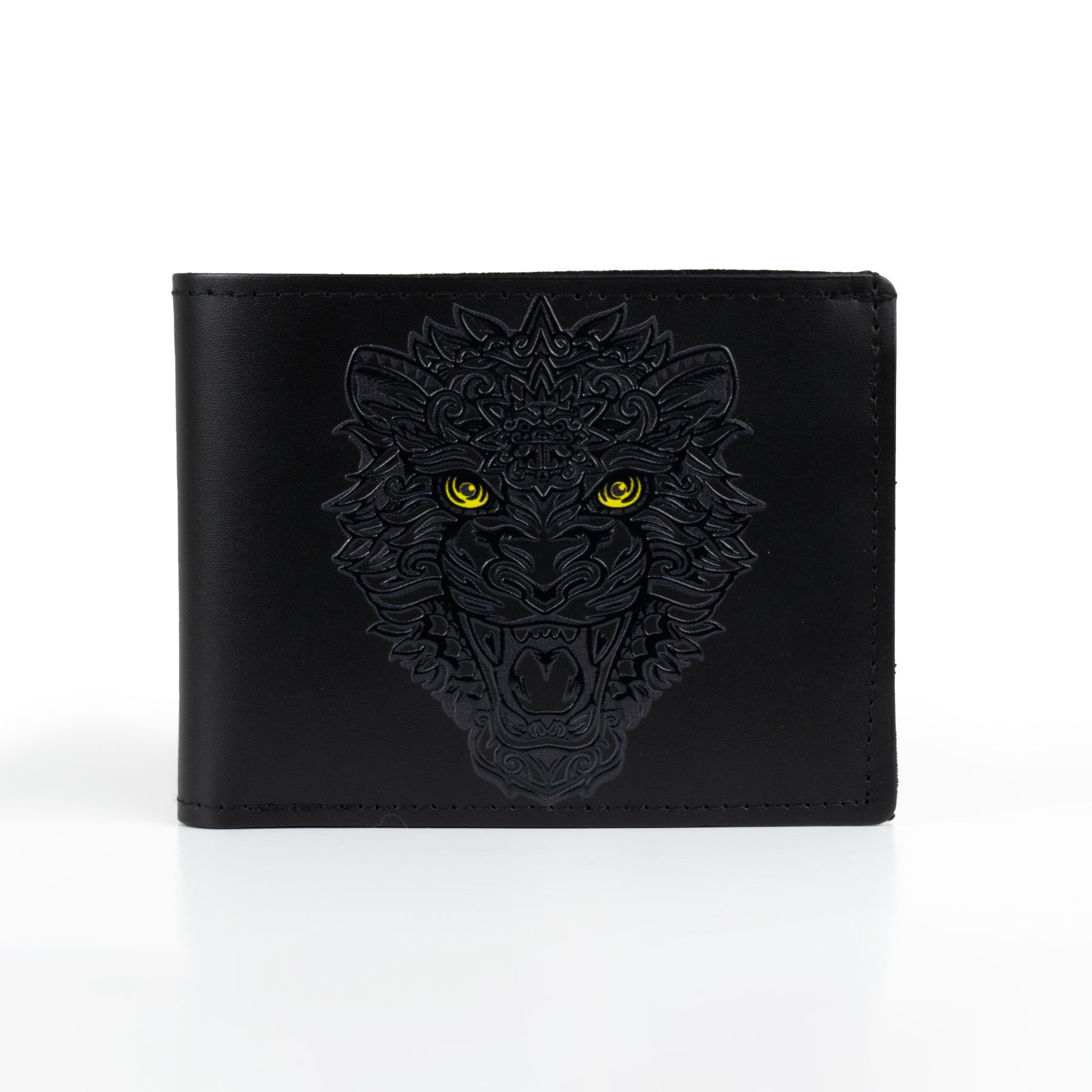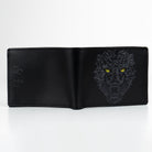 Cartera de piel en color negro con impresión del majestuoso Jaguar/Balam