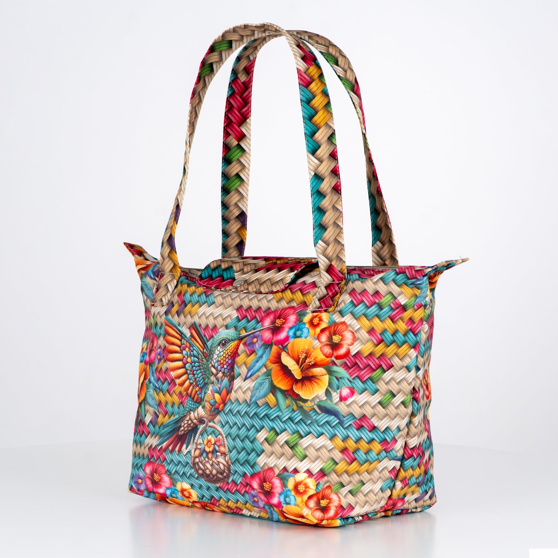 Lleva la belleza contigo a todas partes con la Bolsa Izahuatl. Este vibrante diseño no solo captura miradas, sino que redefine la practicidad. Su ingenioso sistema plegable te permite guardarla fácilmente y desplegarla al instante para revelar una capacidad sorprendentemente amplia. Perfecta para el uso diario o como tu aliada en cada viaje.