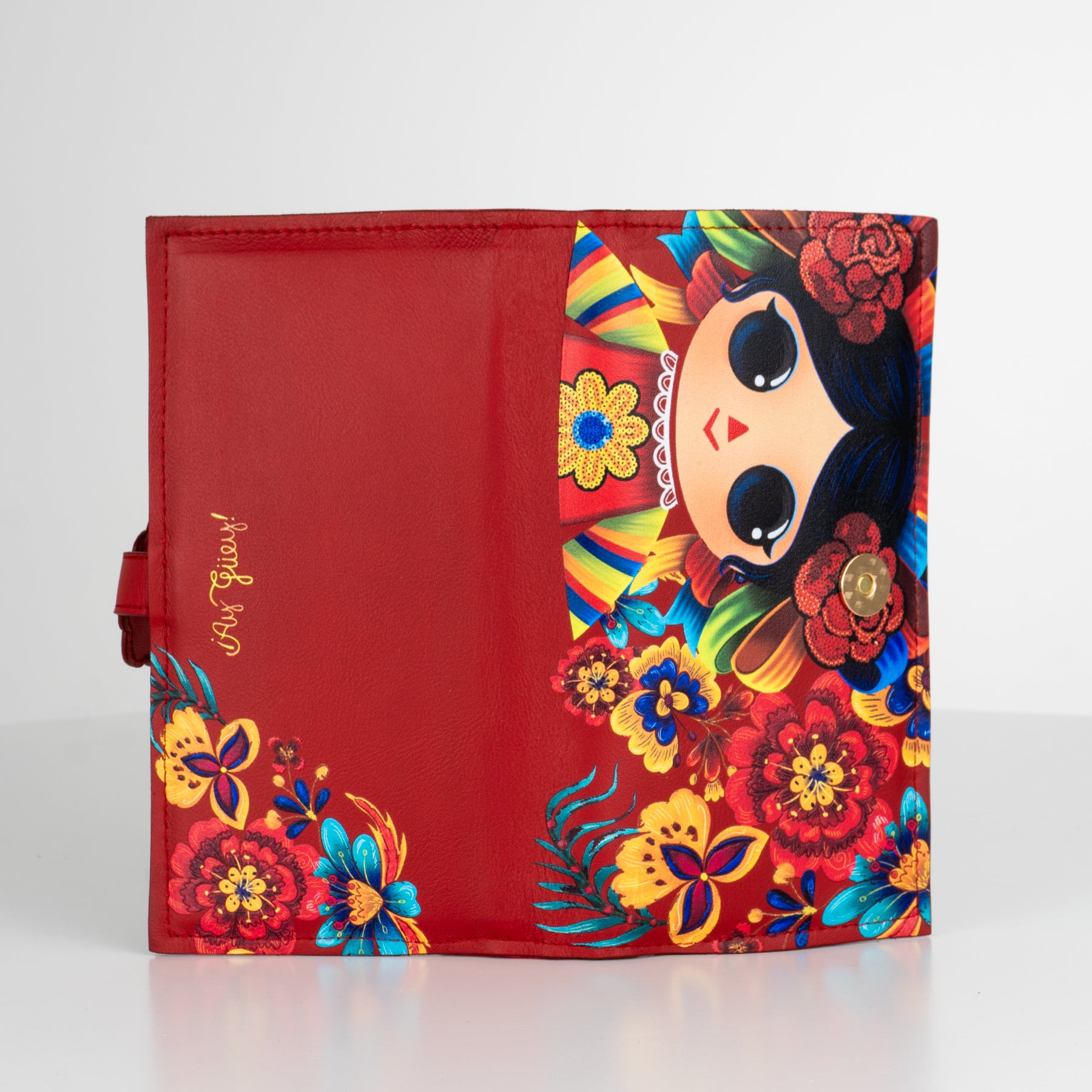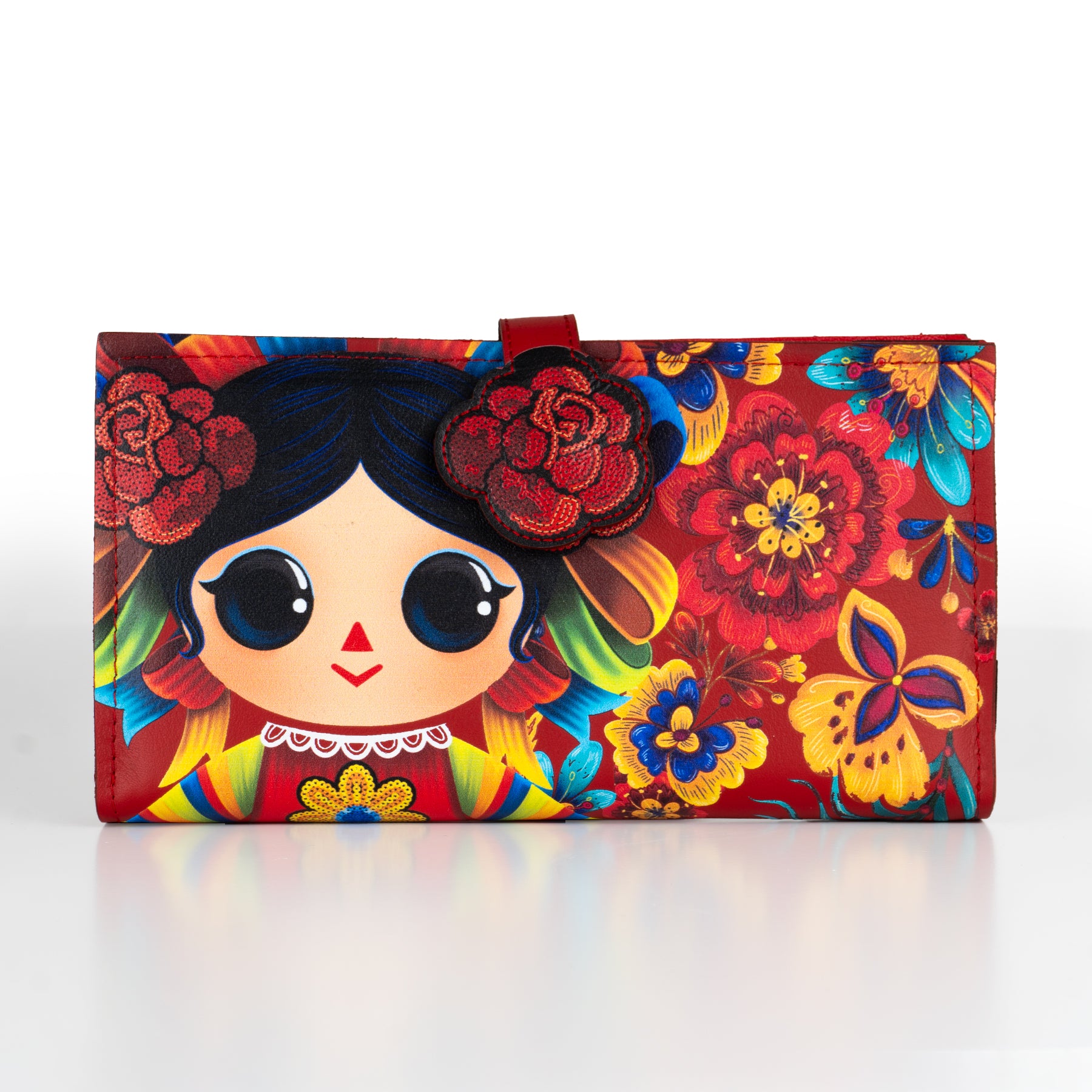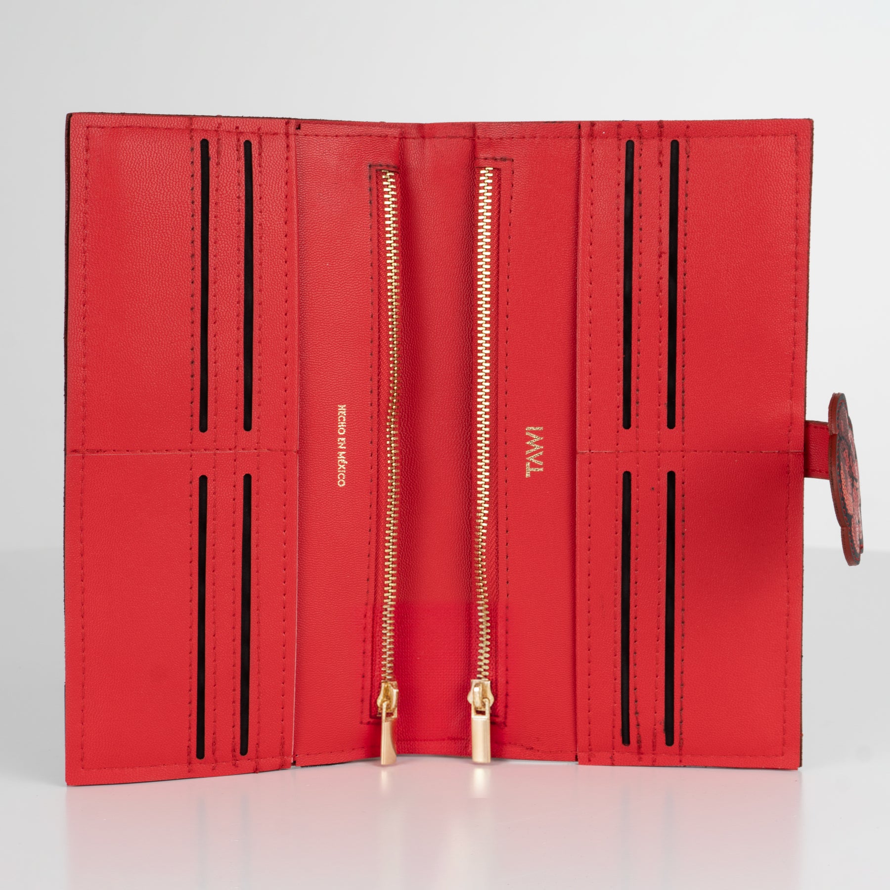 Cartera amplia de dama, con 3 bolsillos, tarjeteros y monedero.