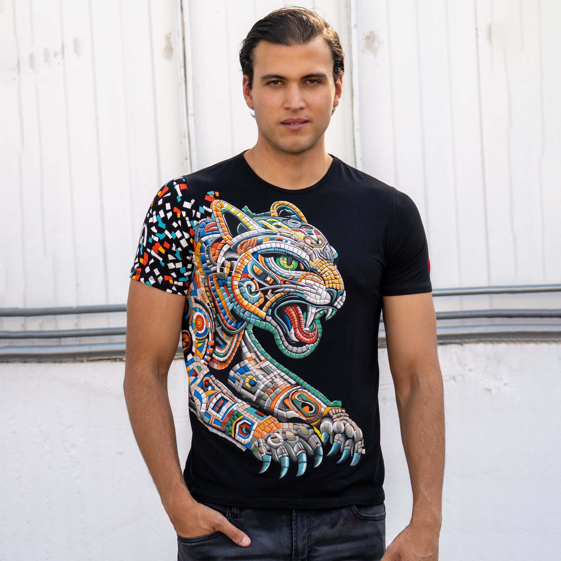 Playera con estampado asimétrico de gran formato para hombre - Modelo ESQUITE