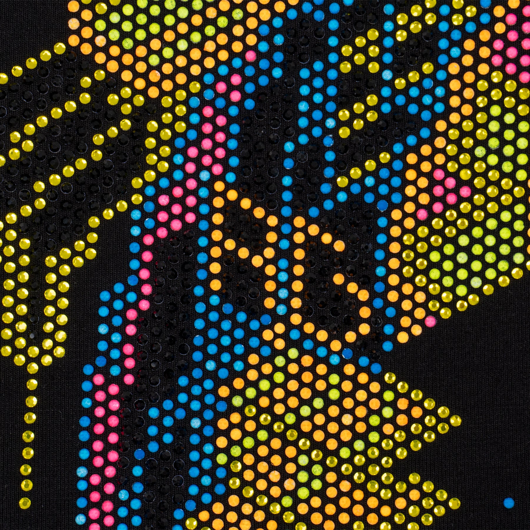 Playera para mujer con aplicación de pedrería neón y brillante - Modelo PAJARITOS A VOLAR