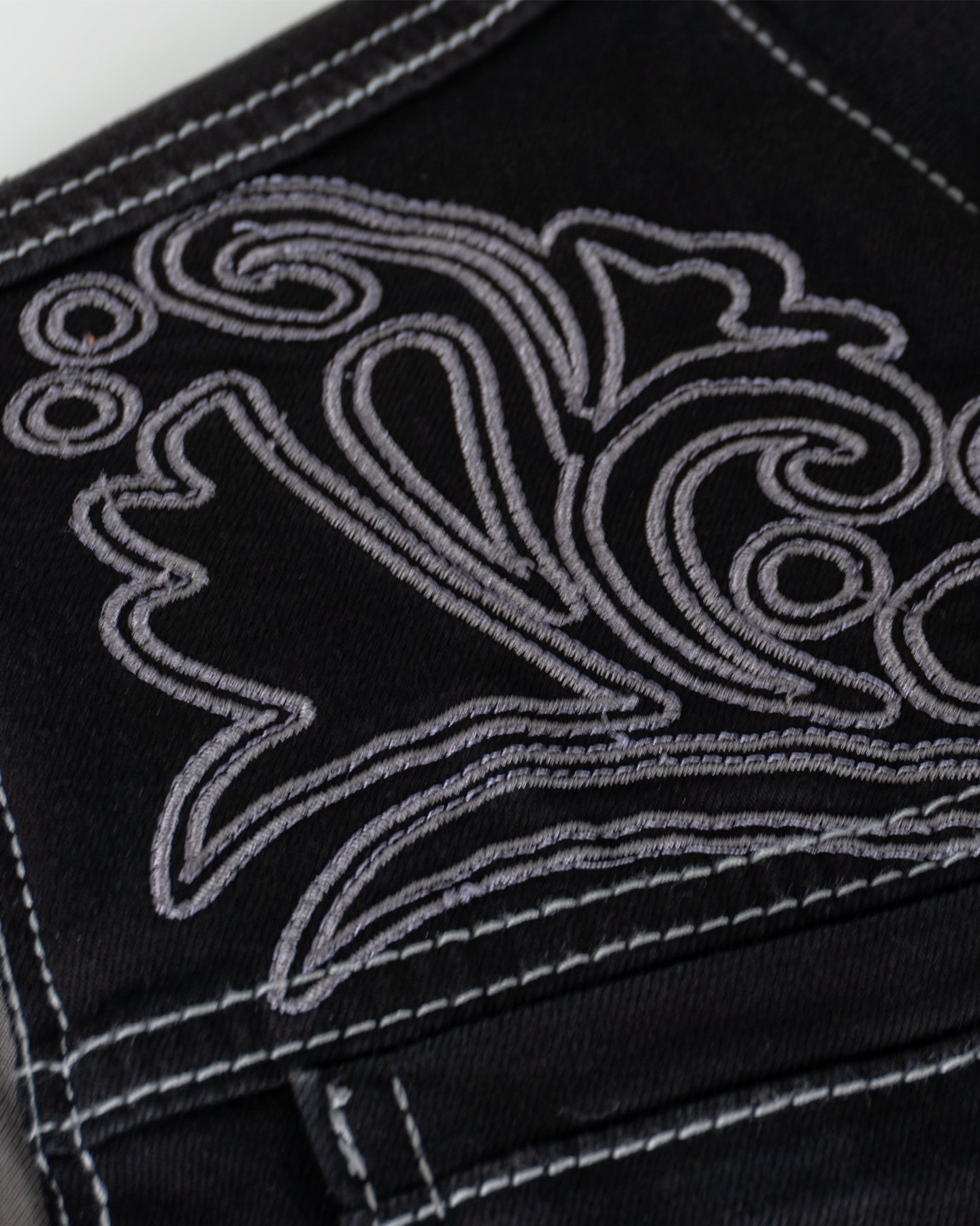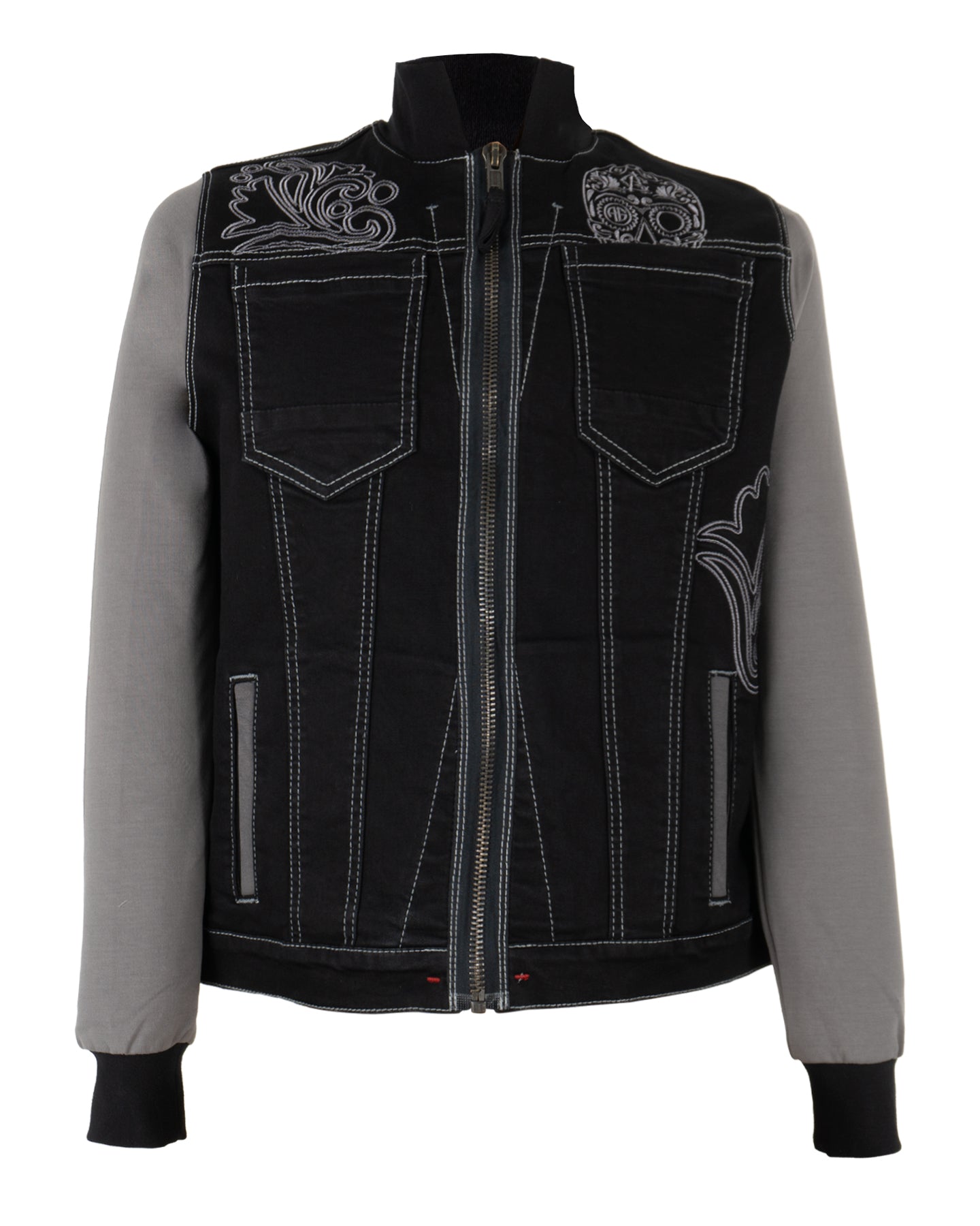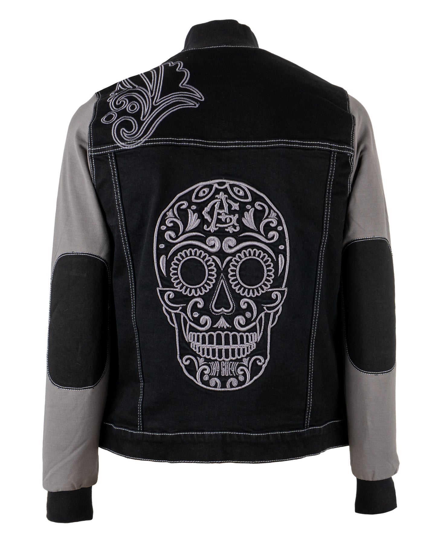 Bordado en relieve de calavera de azúcar en espalda.