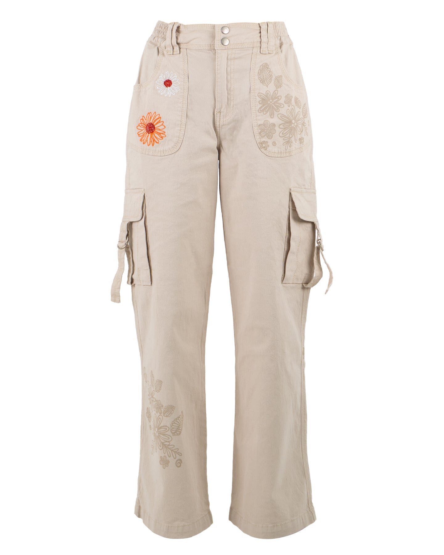 Cuenta con botones metálicos adornados, bolsas laterales con correas ajustables. Cuenta con un ornamento floral y parches bordados que le brinda un estilo inigualable.