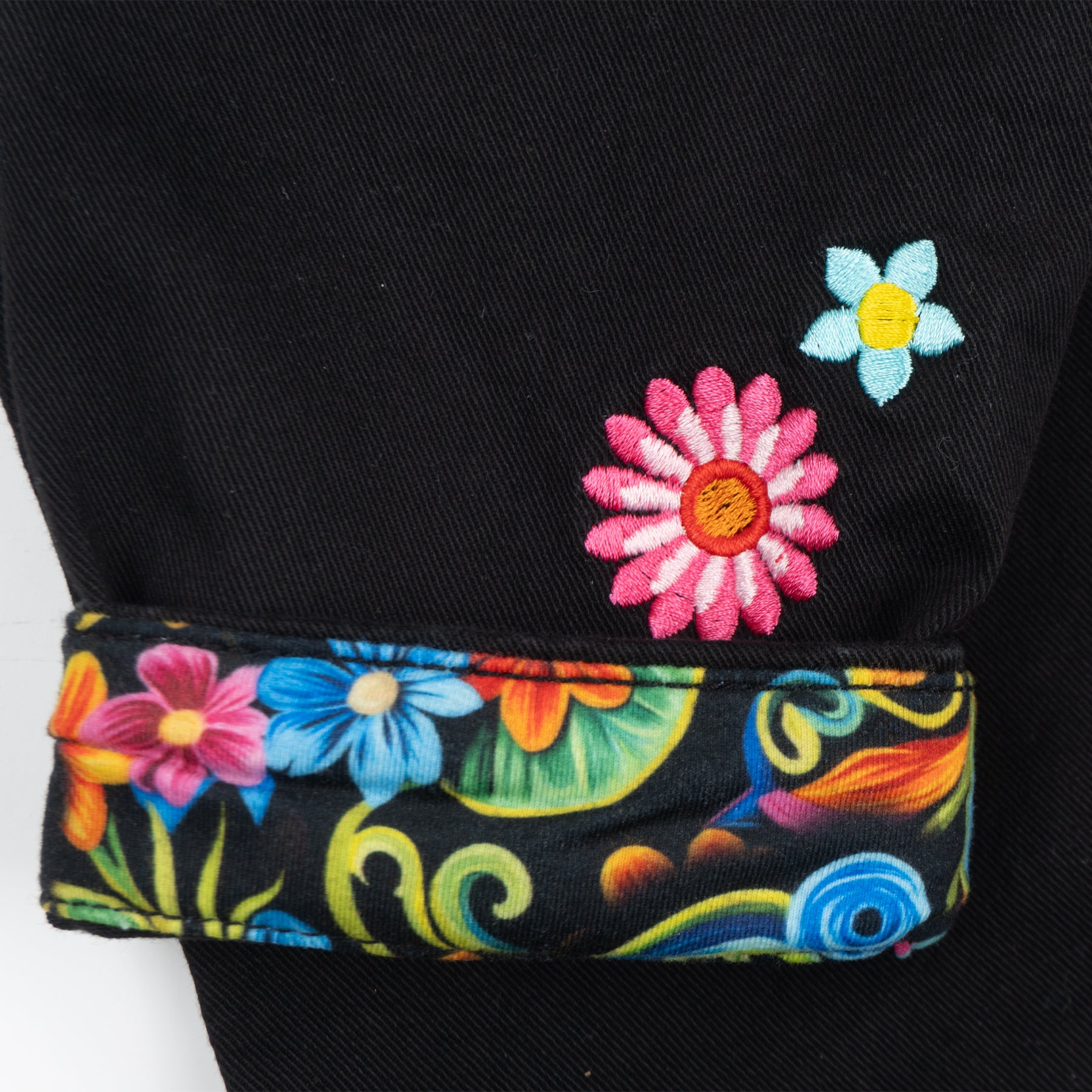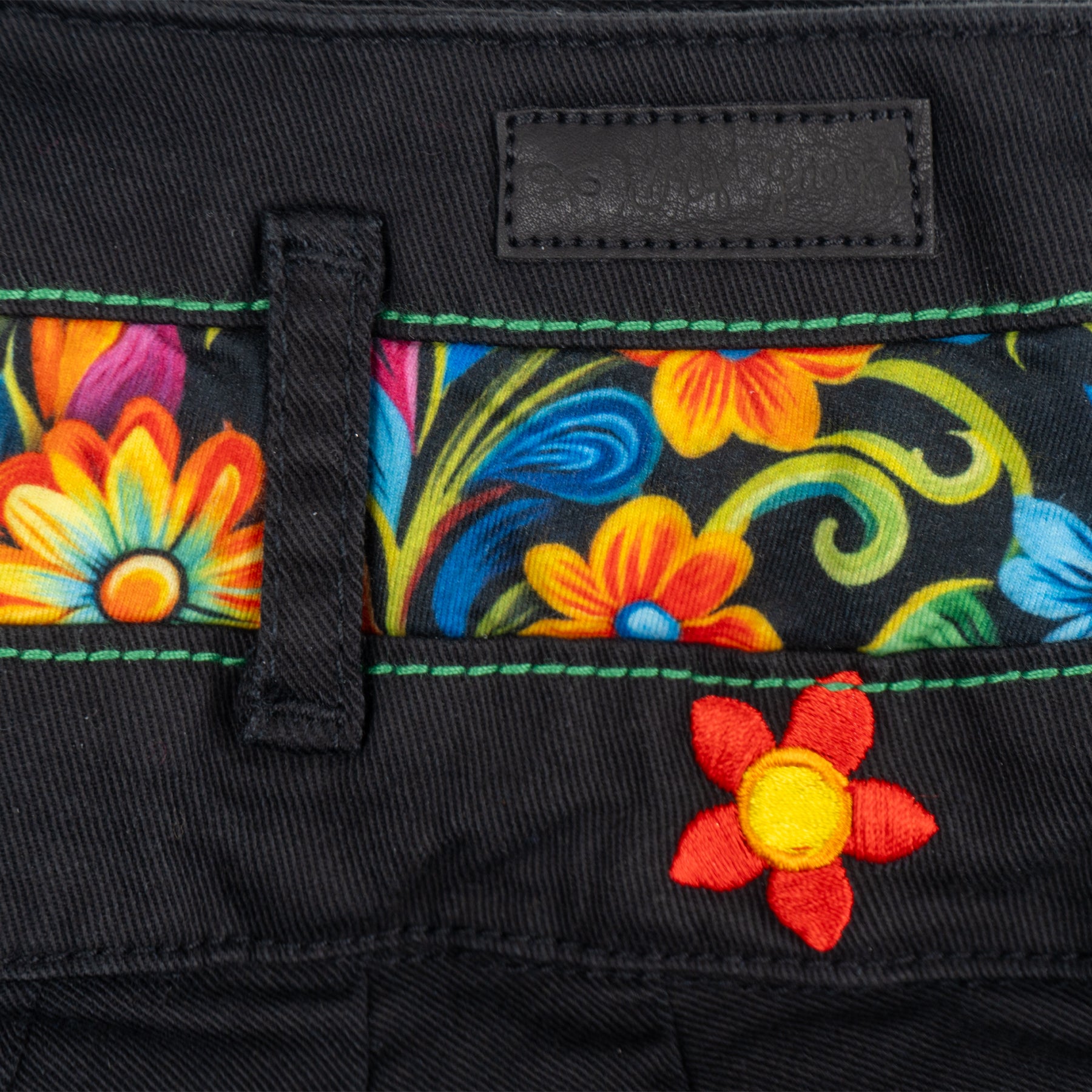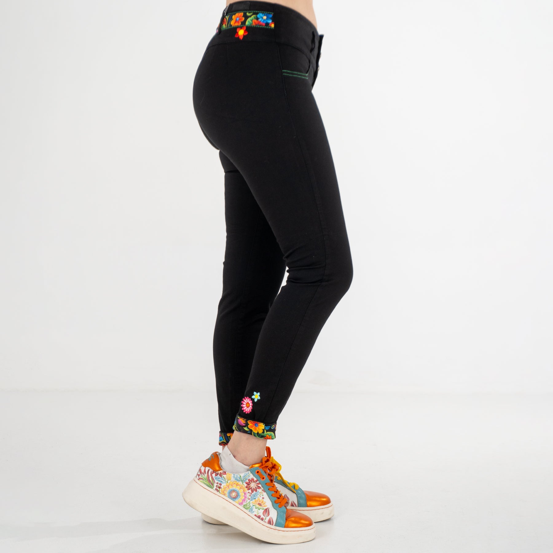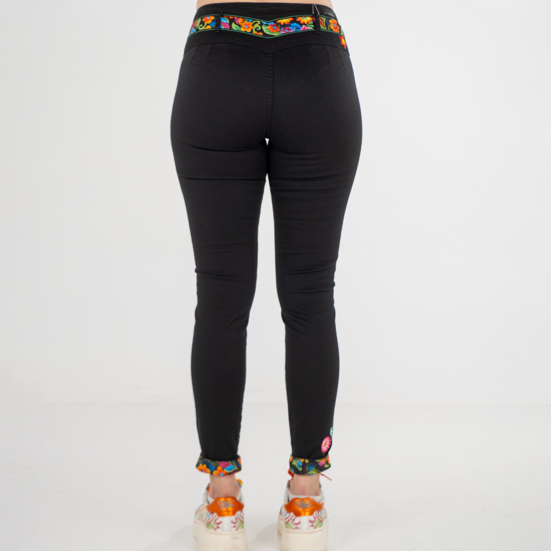 Pantalón de dama, nuestro clásico QQ con detalles de bordado y sublimado con motivos florales en la parte posterior que enmarca la cintura y el QQ ...
