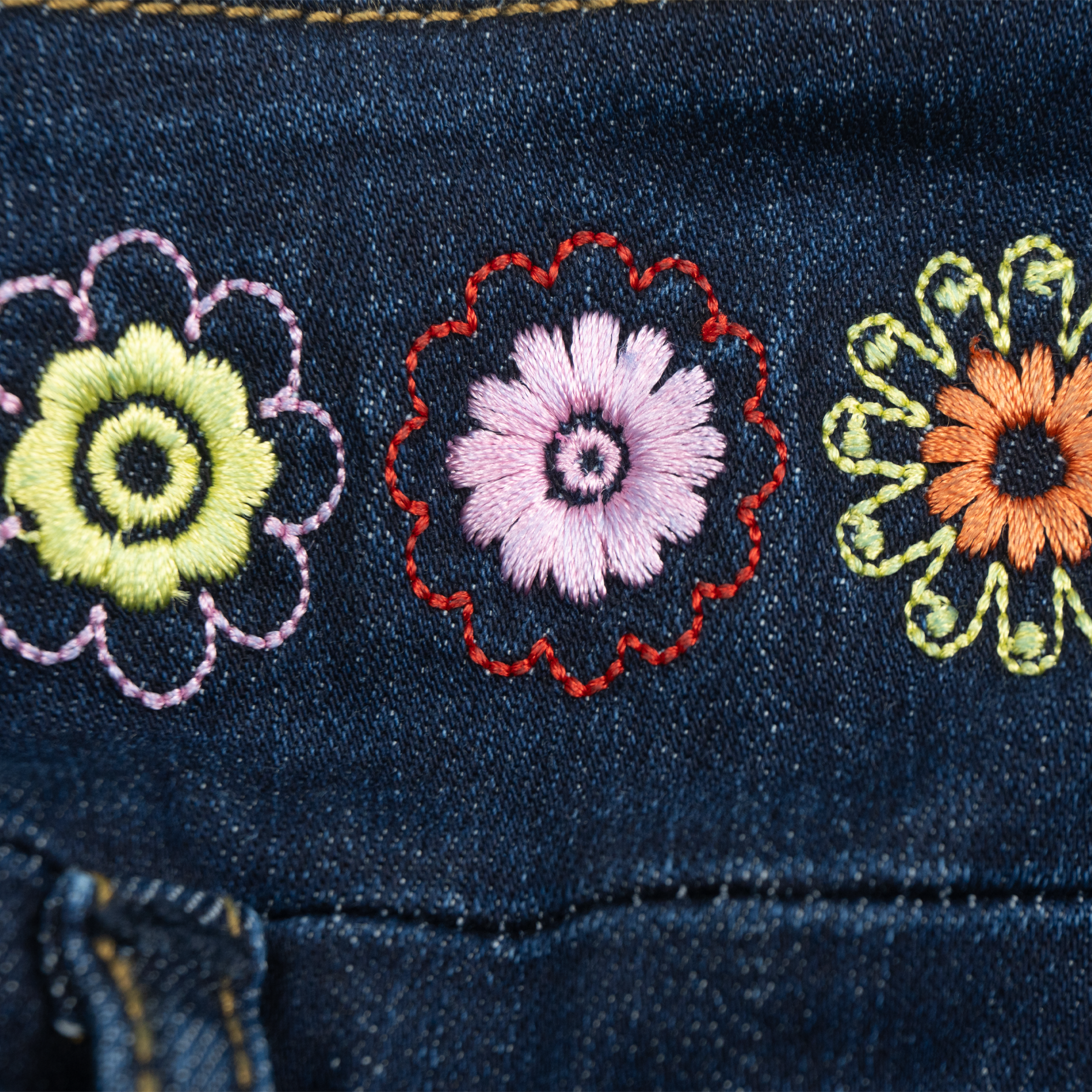 Pantalón de dama, nuestro clásico QQ con detalles de bordado y sublimado con motivos florales en la parte posterior que enmarca la cintura y el QQ ...