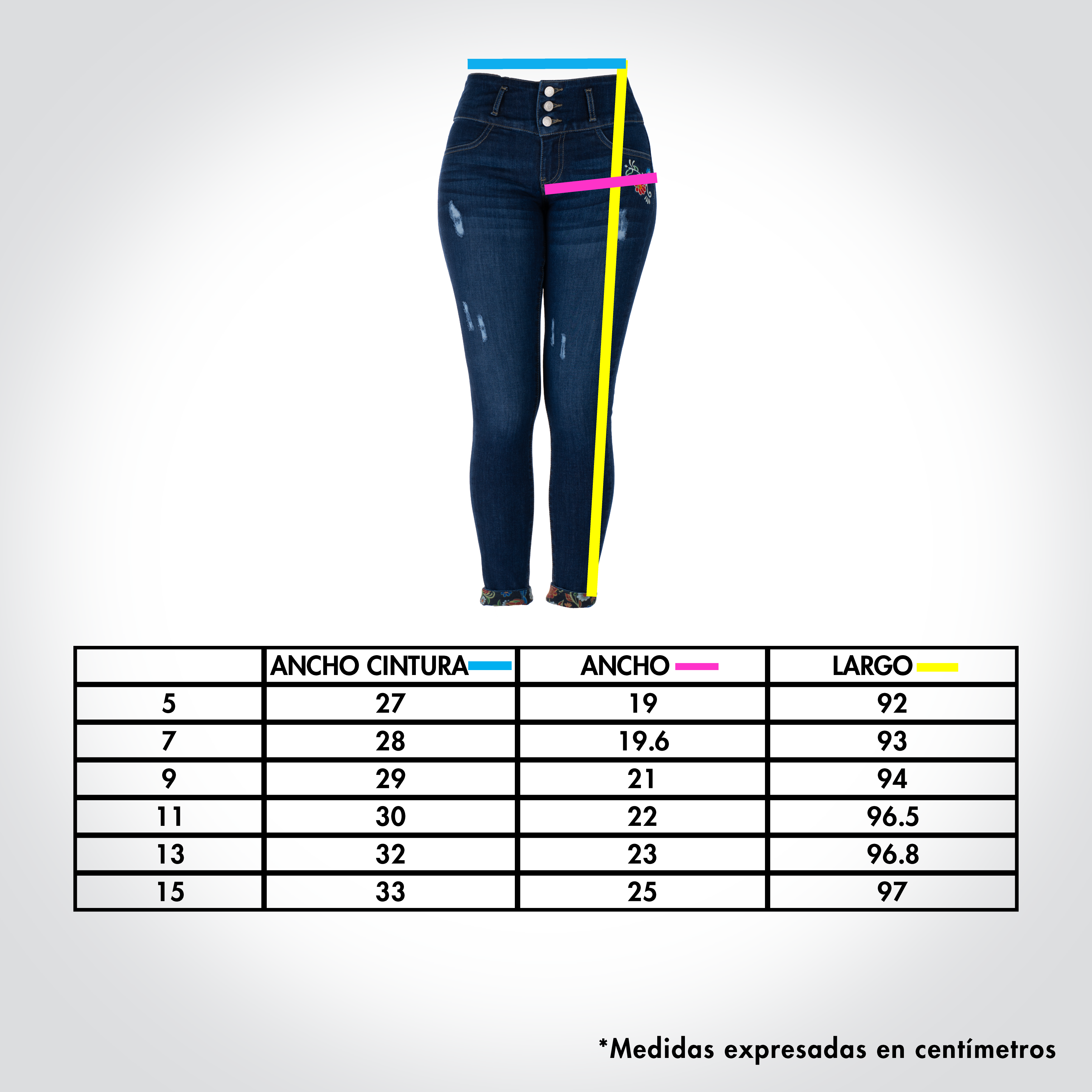Jeans Push-Up de mujer modelo “QQ3” con detalles bordados - FRESA