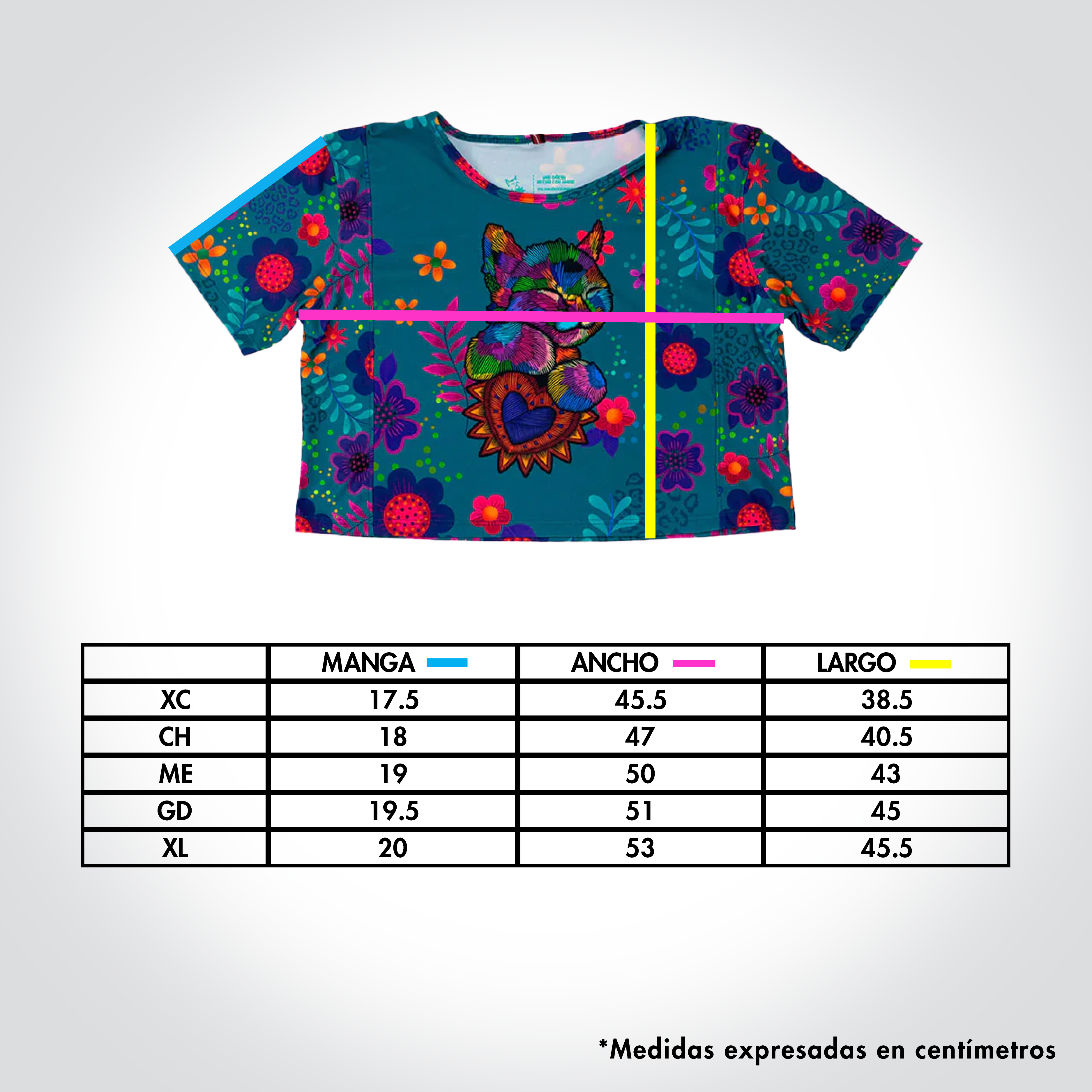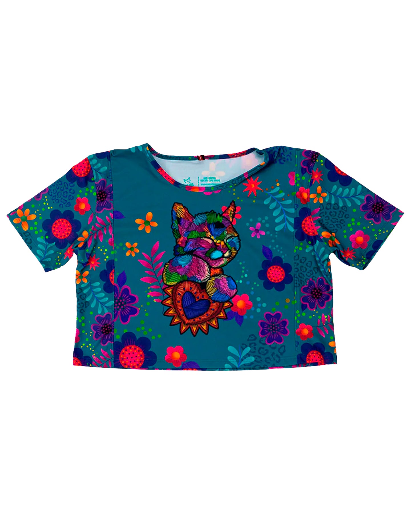 ♦️Playera tipo Crop Top para mujer - Modelo Arte Gatuno