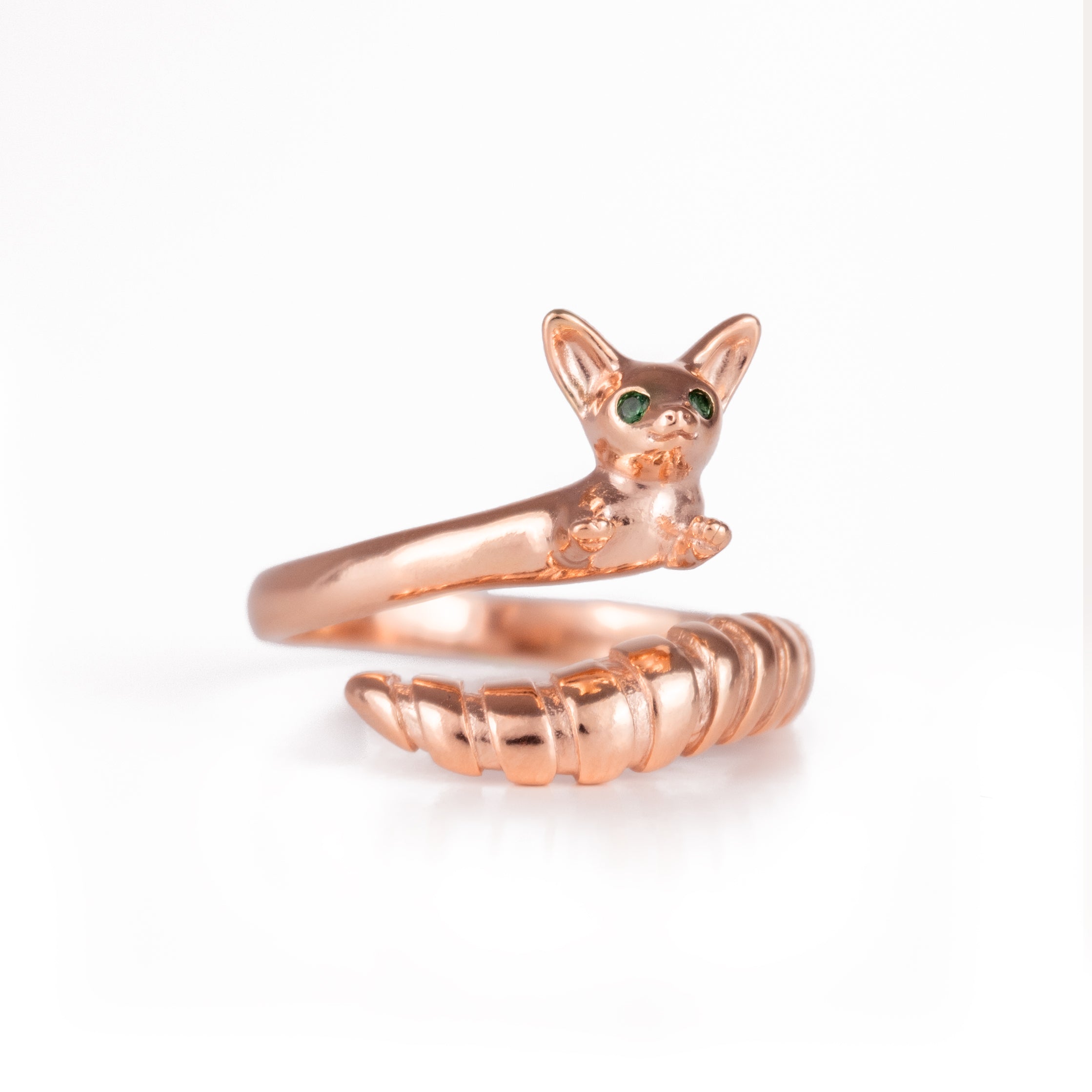 Hermoso anillo de plata con dije en forma Cacomixtle. Se adapta al dedo gracias a su diseño abierto.