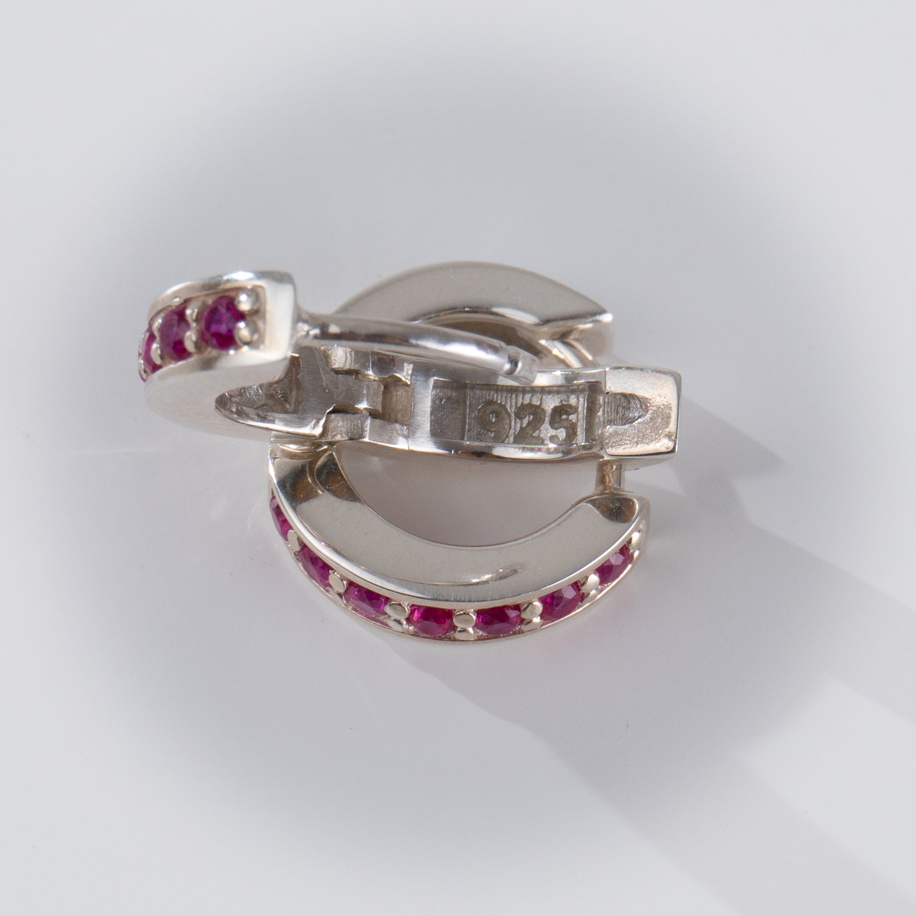 Con incrustaciones de brillantes en tonalidad rosa, hechos de plata ley 925, estas piezas son una combinación perfecta de elegancia y durabilidad. El cierre de broche asegura que se mantengan seguros en tus orejas todo el día.