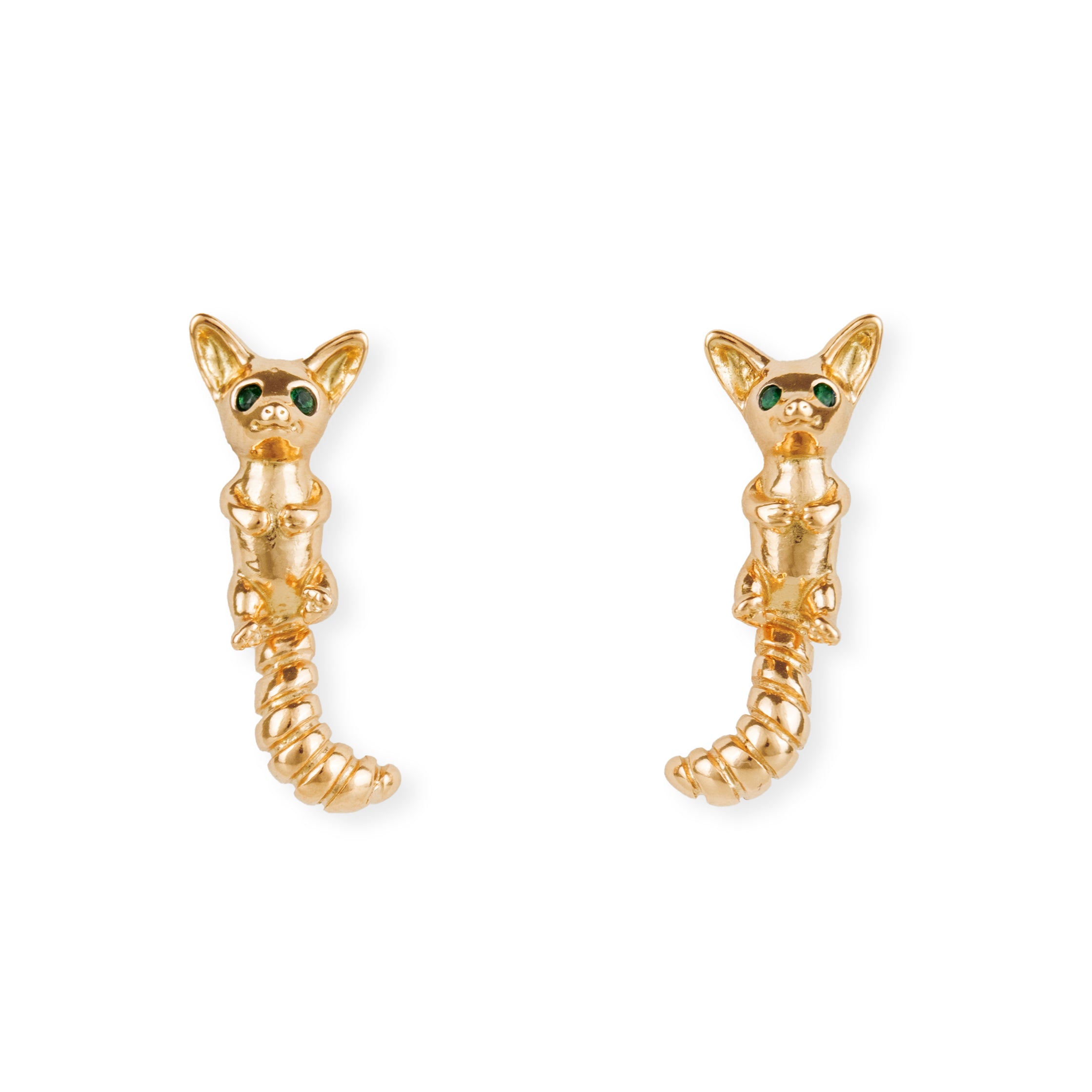 Hermosos pendientes con pasador en forma de "Cacomixtle", un curioso animalito endémico de México.
