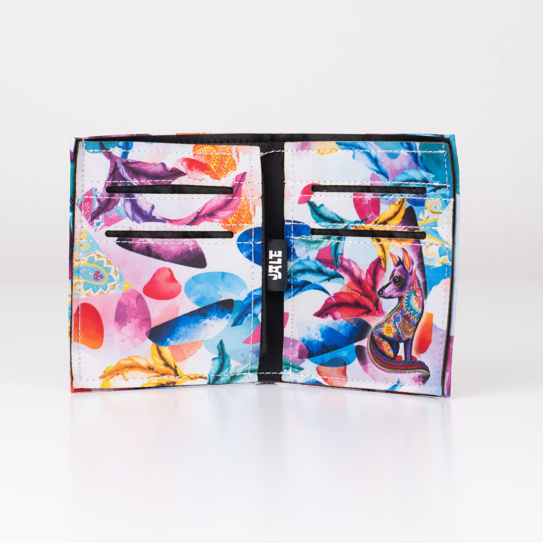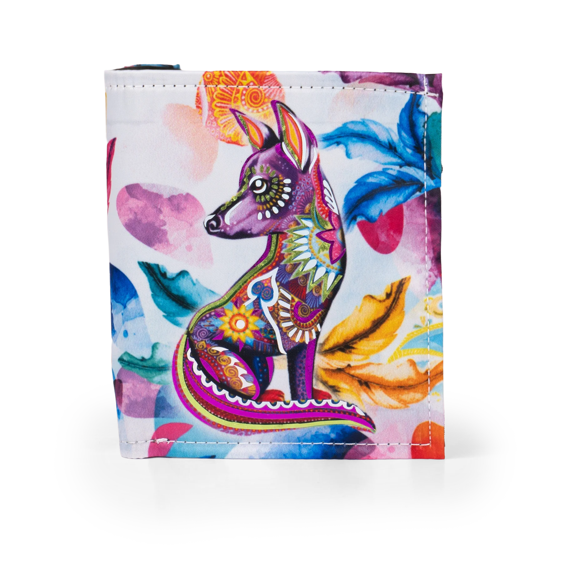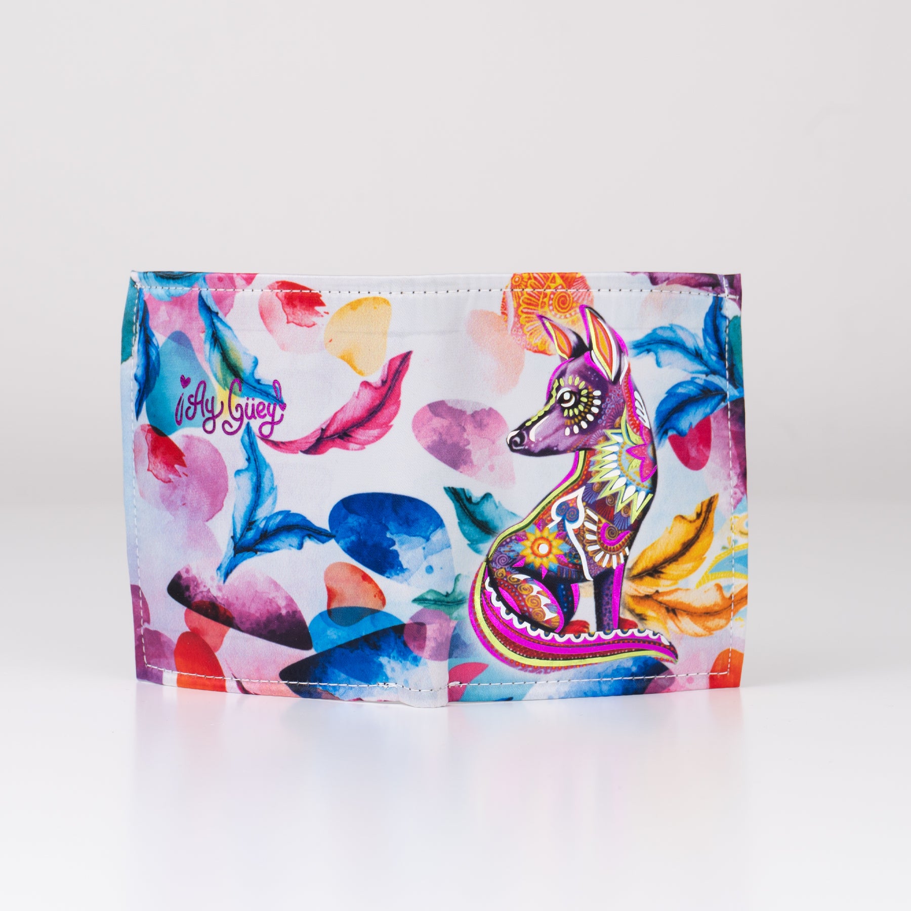 Billetera multicolor y foil dorado. Inspirado en el canino endémico de México.