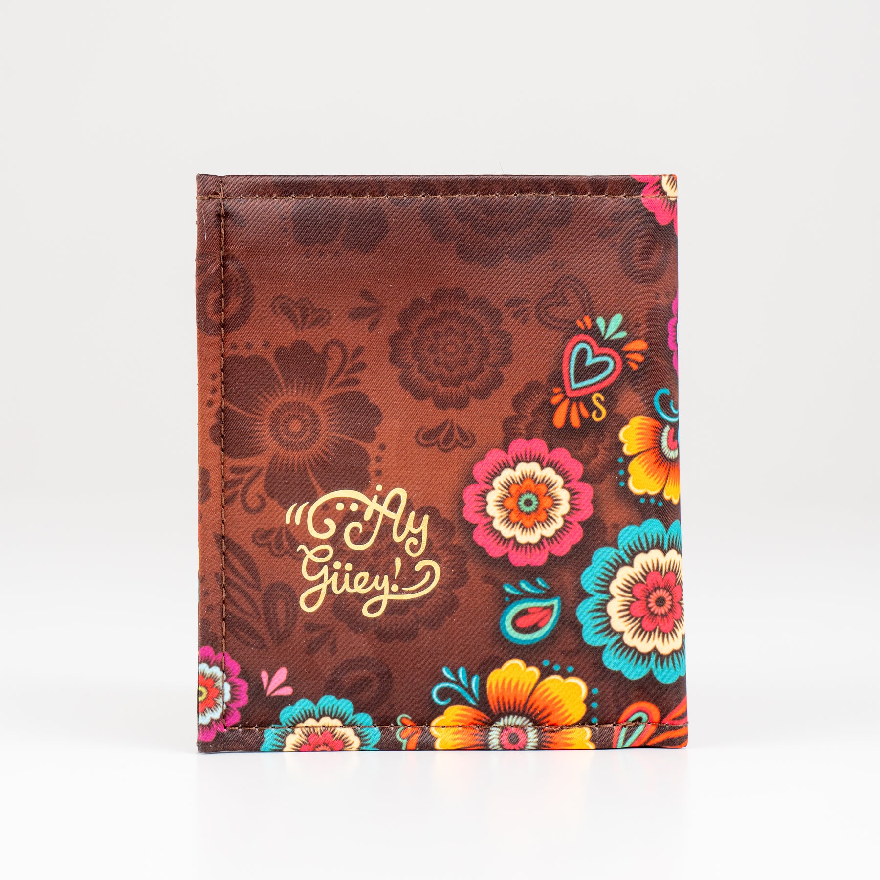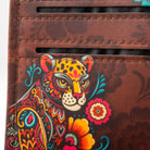 Billetera en color marrón y foil metalizado inspirado en el "Balam" y el colorido de la primavera.