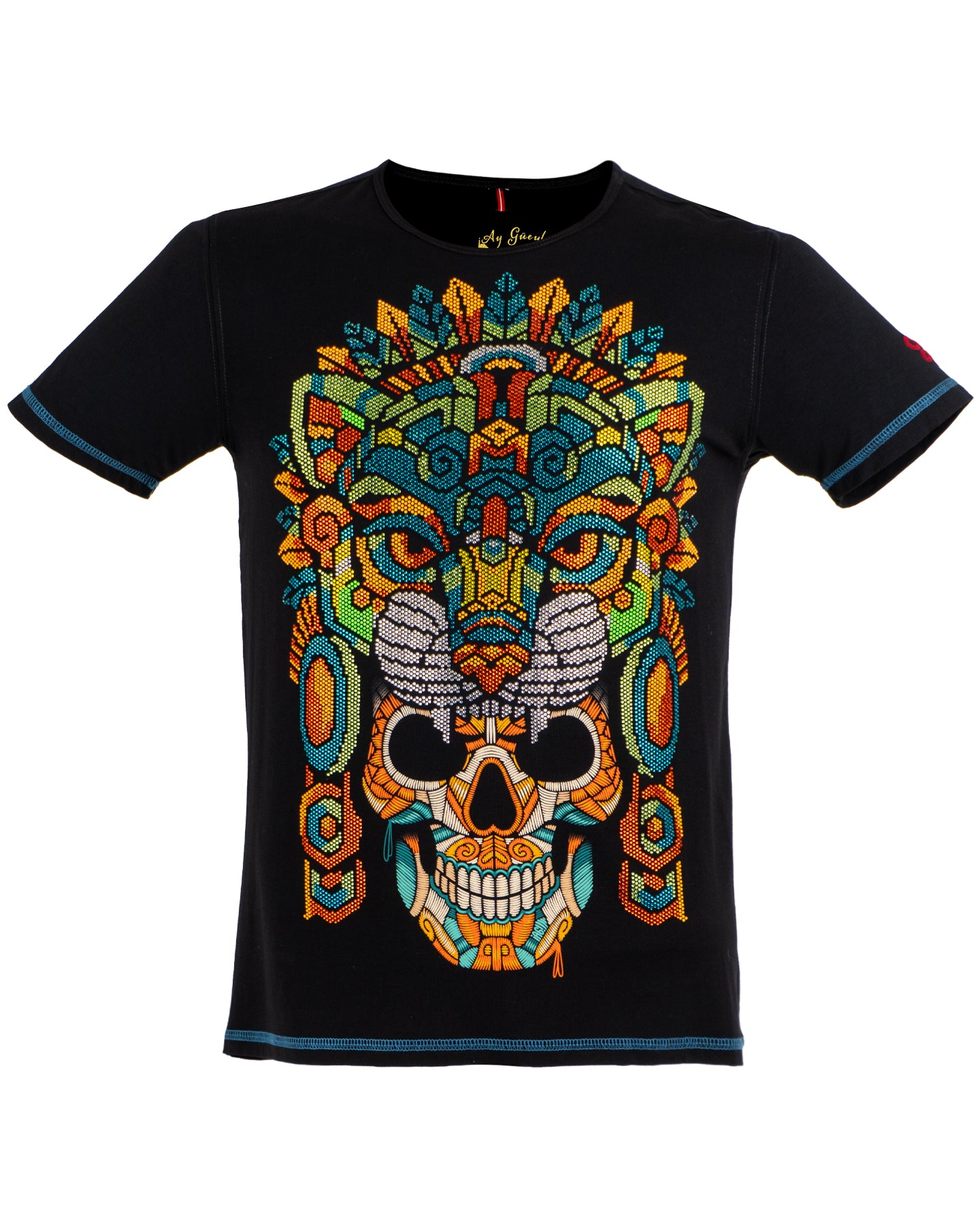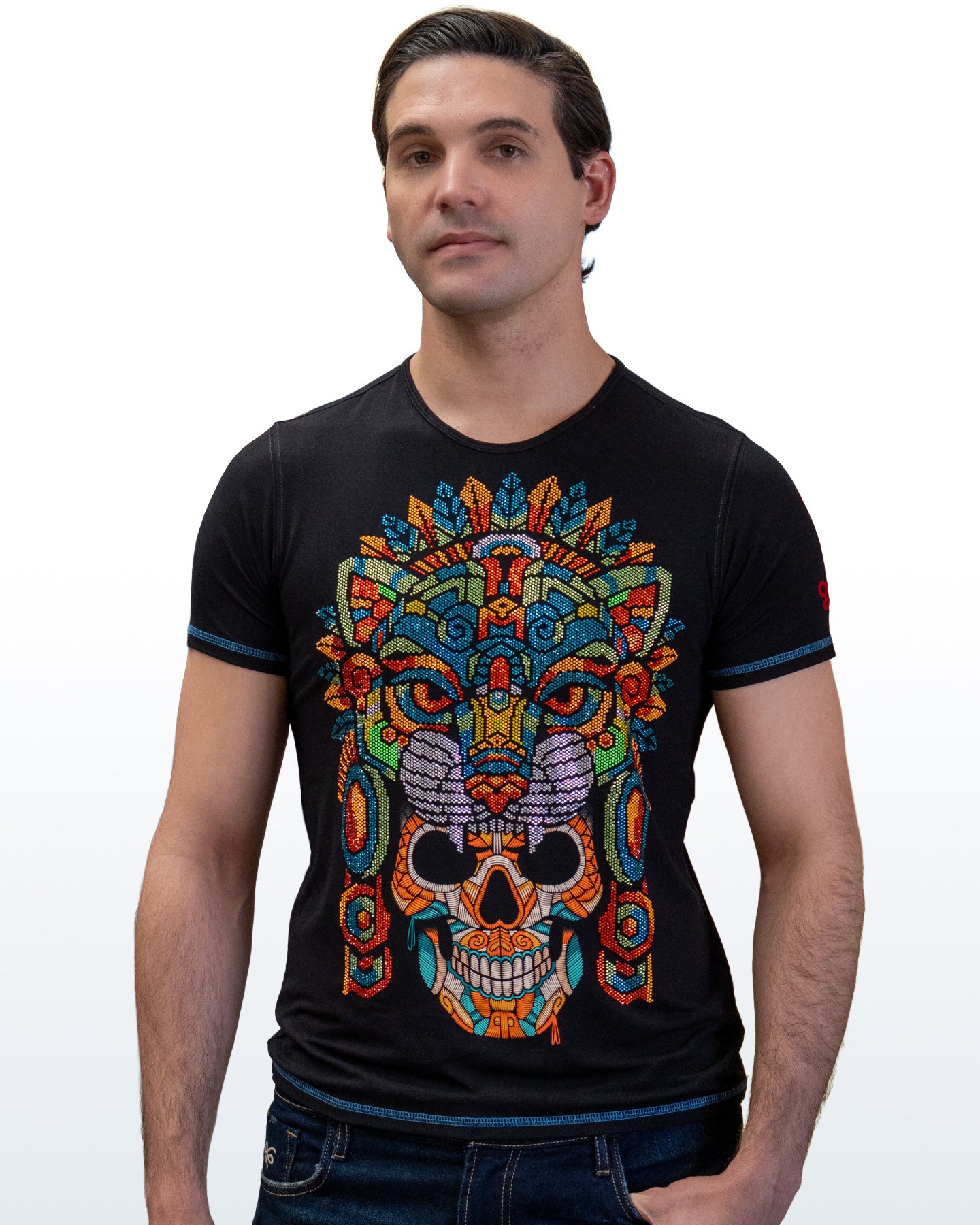 Playera estampada con aplicación de pedrería para hombre - Modelo CINTEOTL