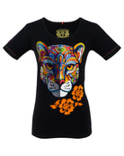 Eleva tu estilo con "Confite". Su diseño es una obra de arte: un rostro felino vibrante y colorido, detallado con un cuidadoso trabajo de aplicación de piedras brillantes que le confieren un lujo sutil y un destello encantador,