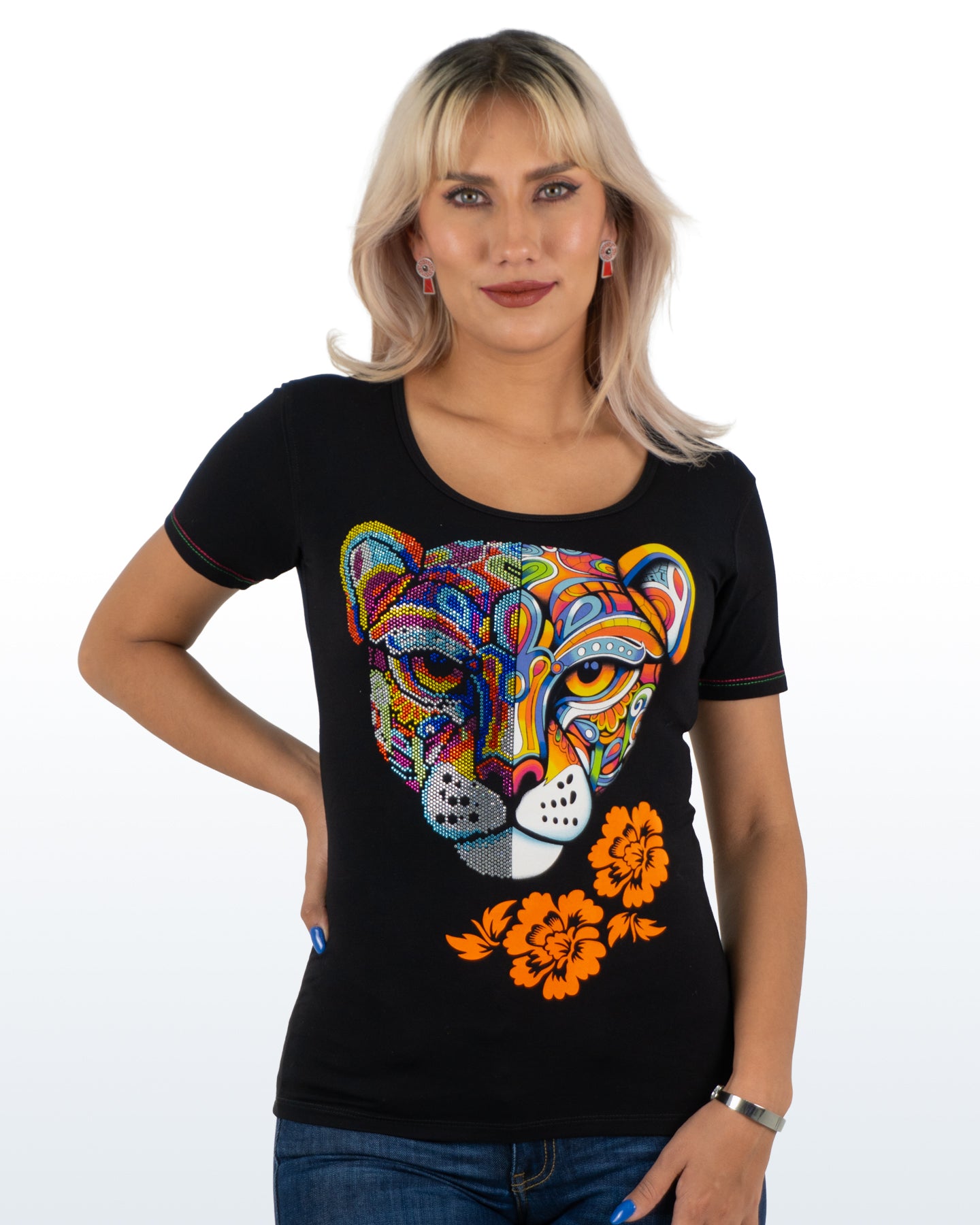Playera estampada con aplicación de pedrería para mujer - Modelo CONFITE