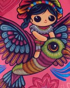 El modelo Vuela Vuela rinde un sincero homenaje a la rica tradición artesanal de México. Su diseño está profundamente inspirado en las clásicas muñecas Petritas y los intrincados bordados mexicanos, capturando la esencia del arte textil y el oficio de los artesanos.