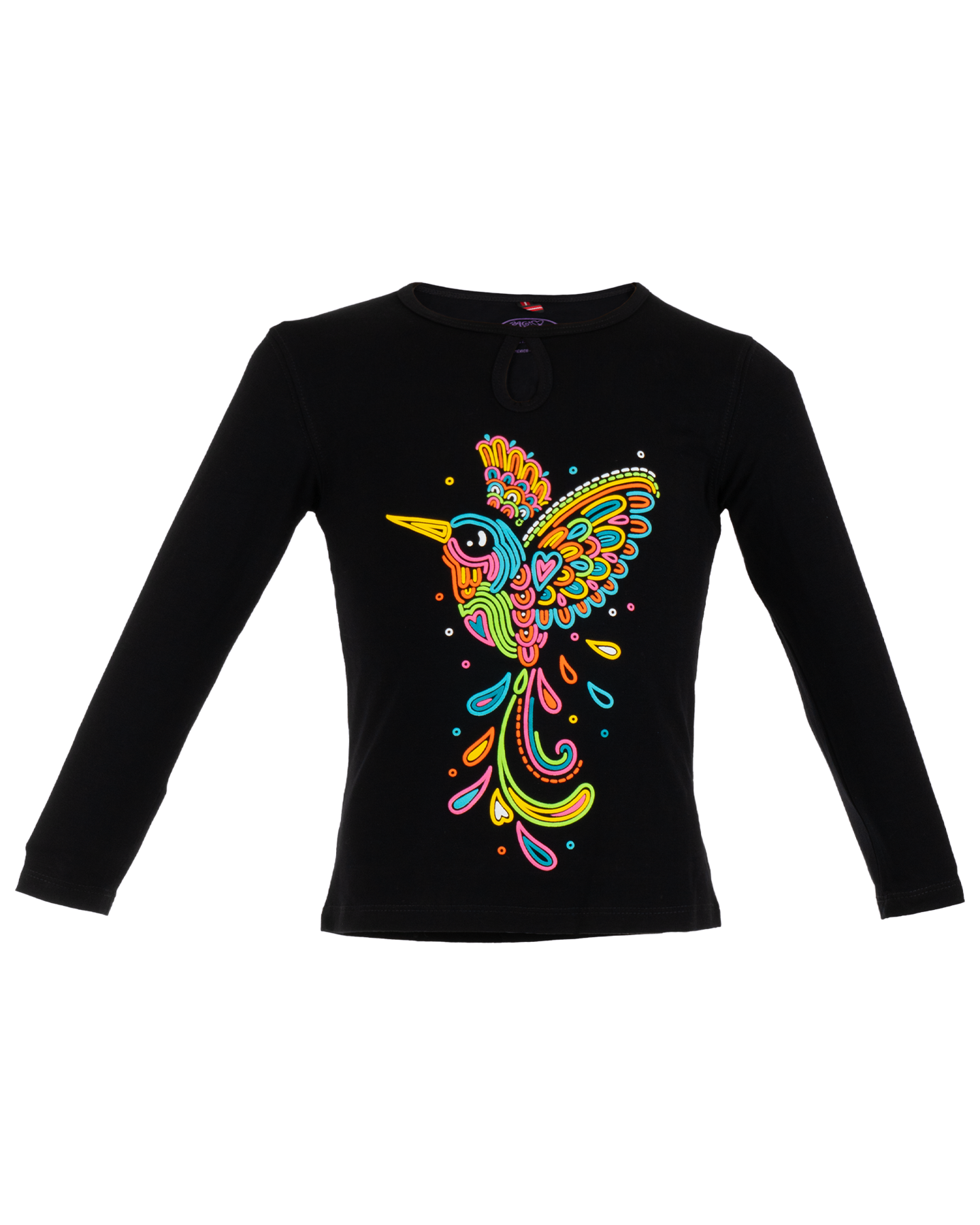 Inspirada en el colibrí, esta blusa tiene una impresión con puff que añade textura, colores neón vivos y manga larga. Disponible también para dama. ¡Siente la energía de la naturaleza!