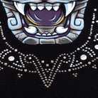 Esta playera te transporta a los antiguos centros ceremoniales mexicanos, donde el poder de la naturaleza se manifestaba en cada ritual. Adornada con aplicaciones de pedrería que evocan los trajes de los guerreros más valientes, esta prenda es un tributo a la rica historia y espiritualidad de nuestras raíces.