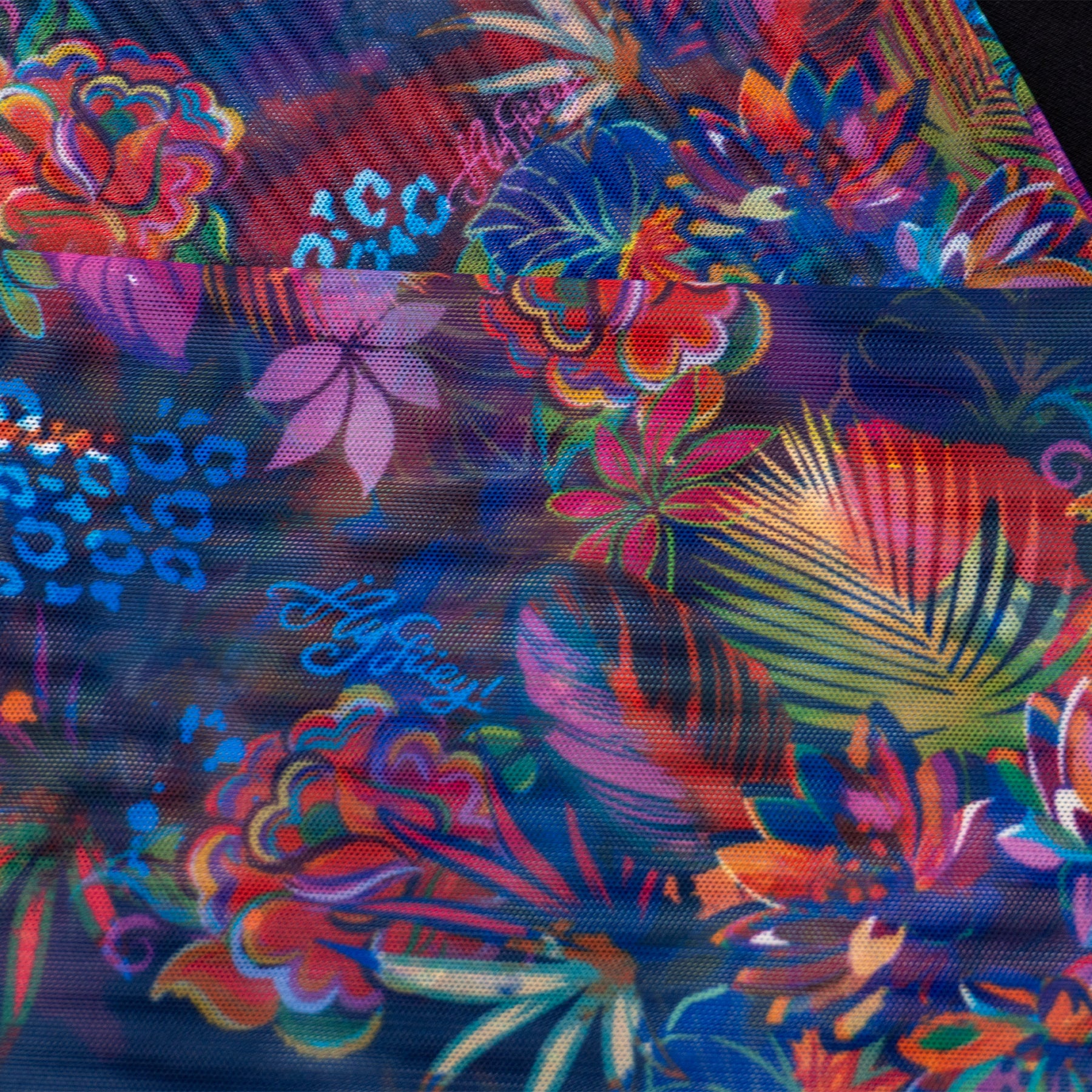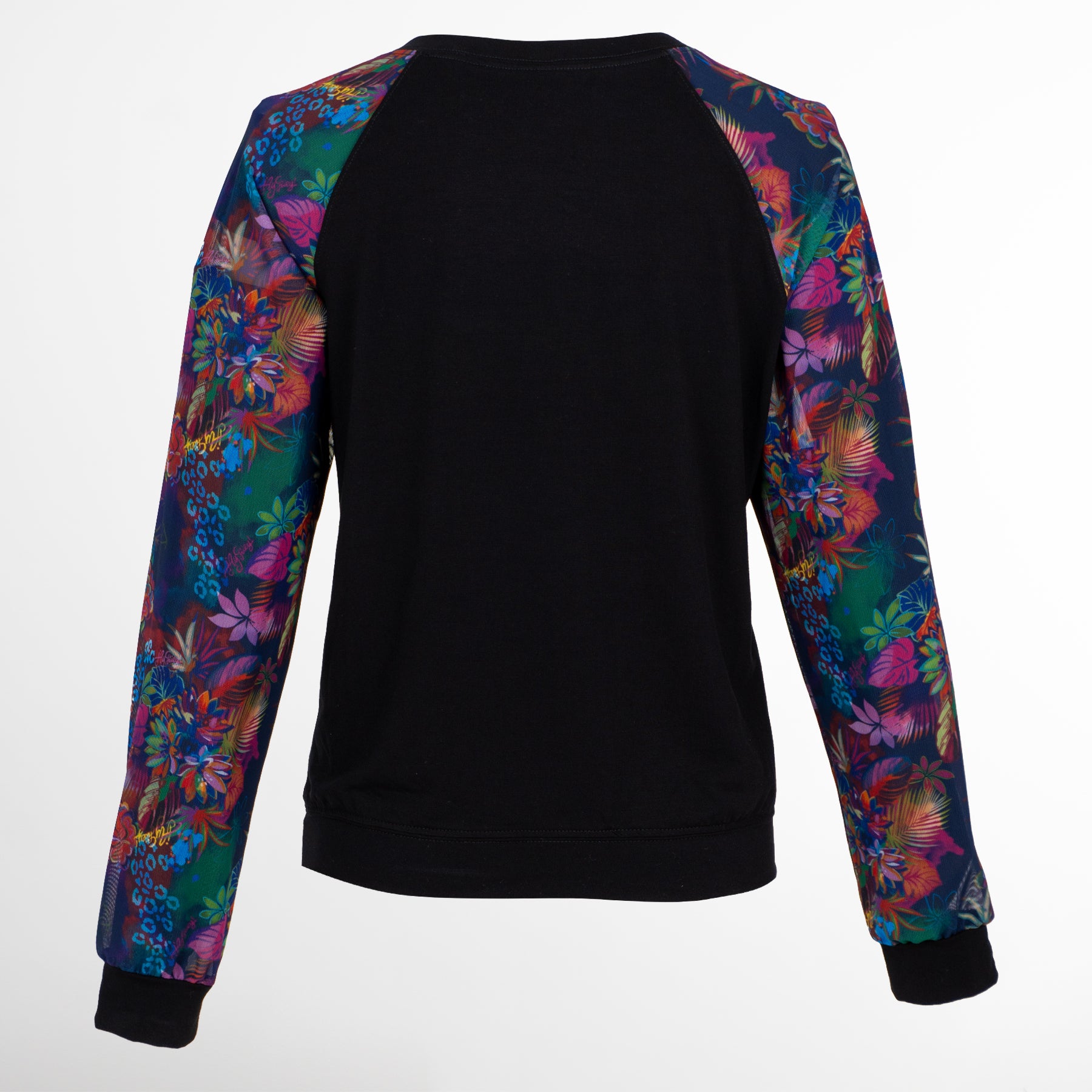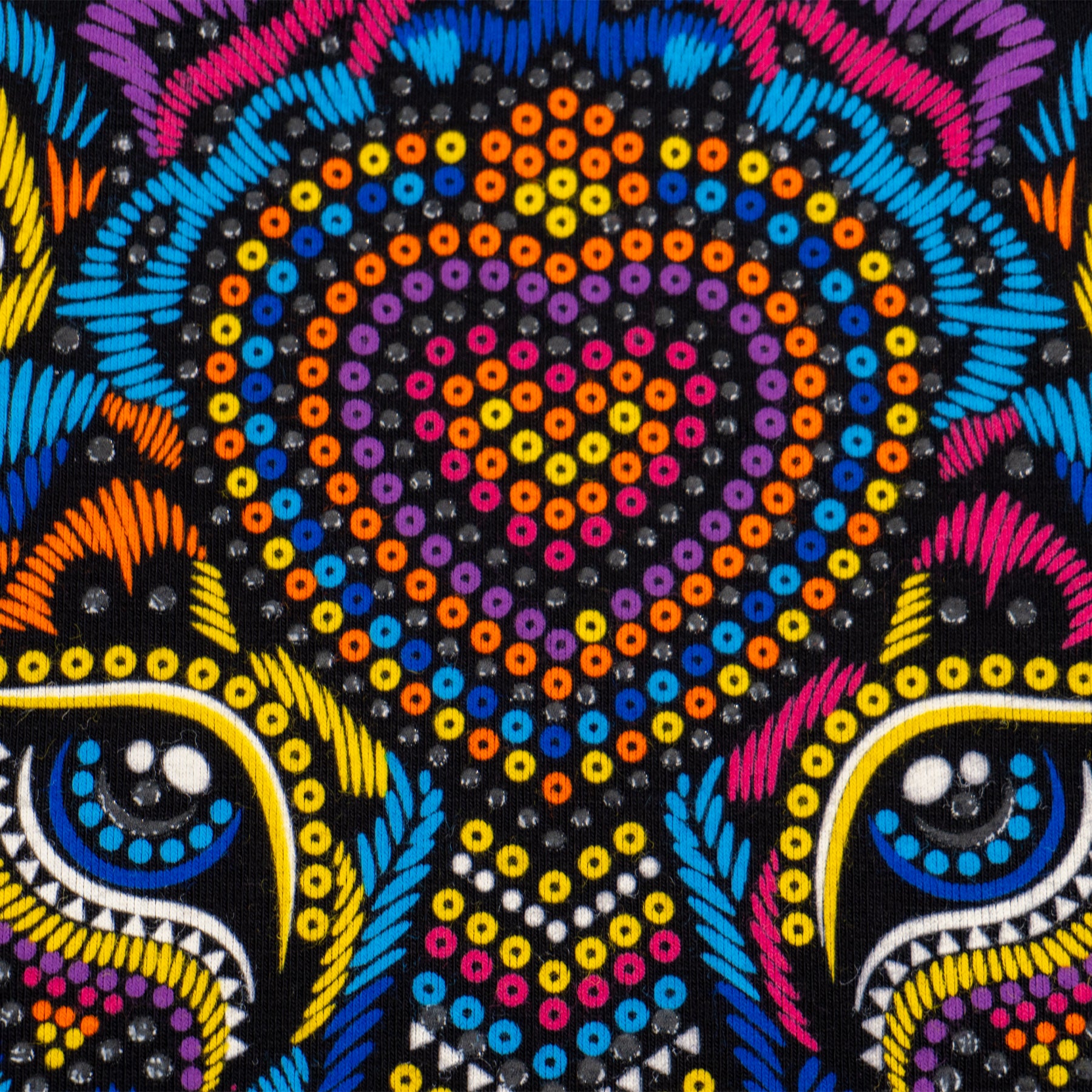 El jaguar, un felino majestuoso y enigmático, es uno de los tesoros más preciados de la biodiversidad mexicana. Este magnífico felino no solo es el protagonista de la selva, sino también un guardián de nuestras tradiciones y leyendas. En la frente del jaguar esta un corazón con estilo huichol lleno de la vibrante energía. La tela de las mangas esta inspirada en la selva y sus elegantes colores.