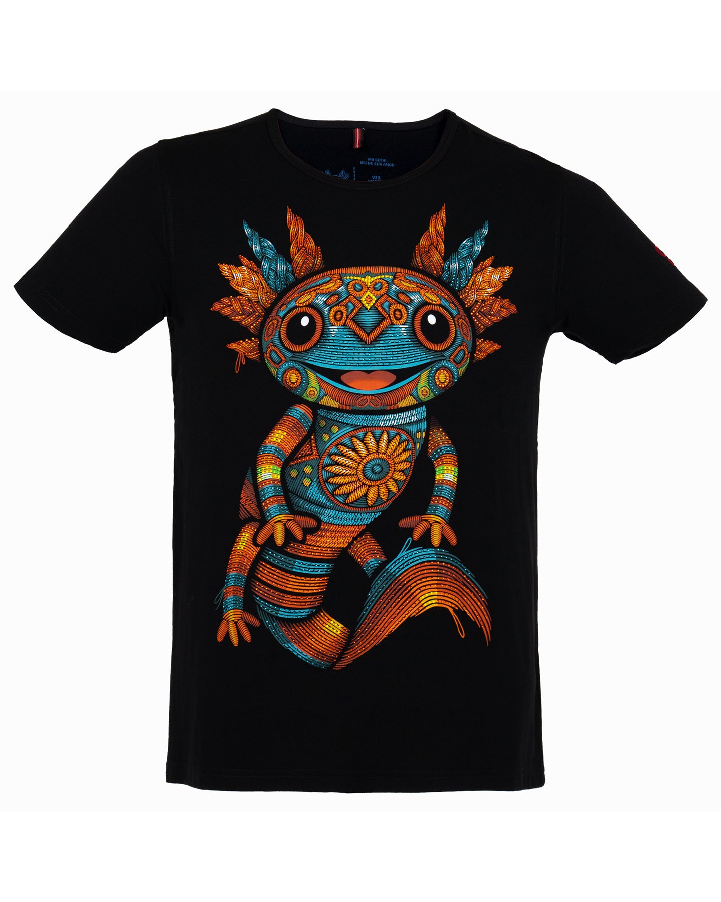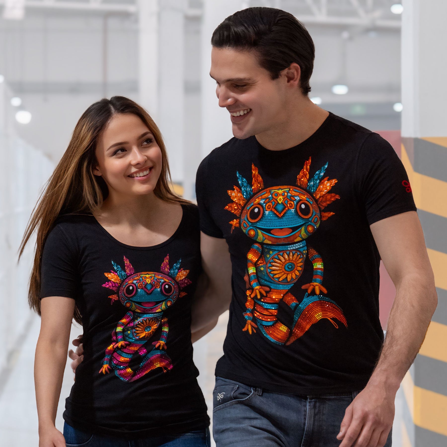 Sumérgete en un mar de color con nuestra playera inspirada en el ajolote. Su diseño simula un tejido y los destellos de neón harán que brilles más que nunca. ¡Perfecta para los amantes de los animales y la moda urbana!