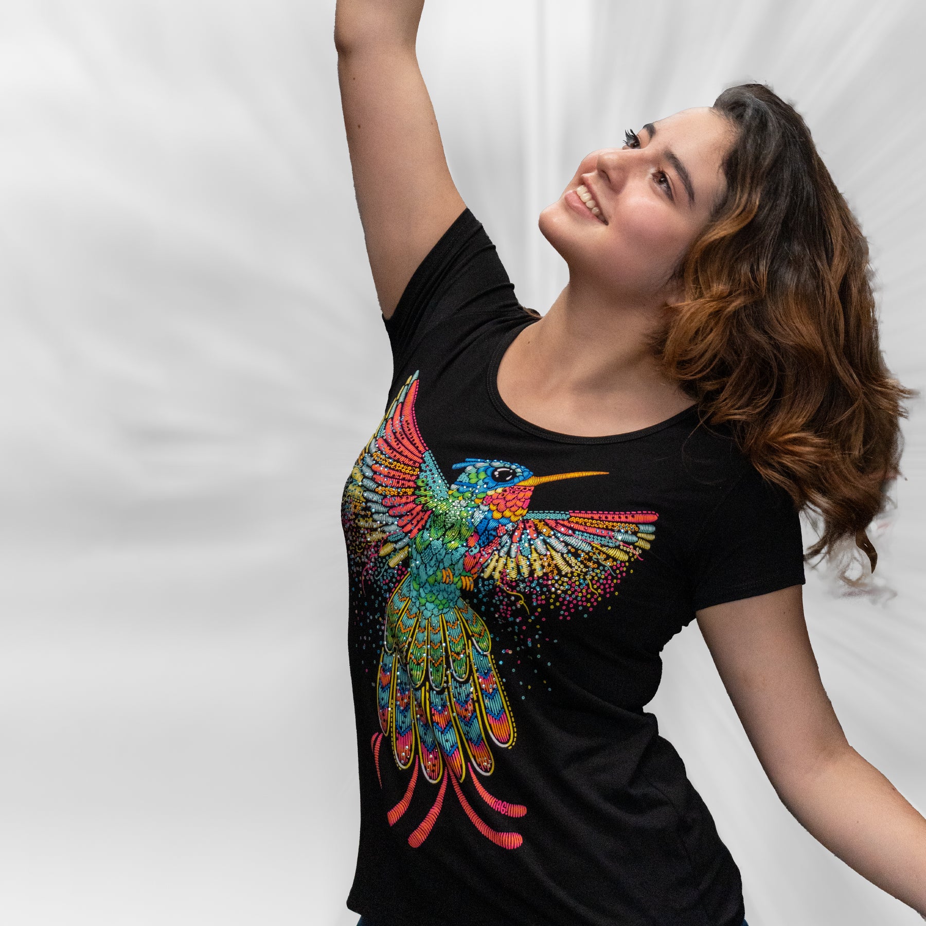 Playera estampada con aplicación de pedrería para mujer - Modelo PAKTLI
