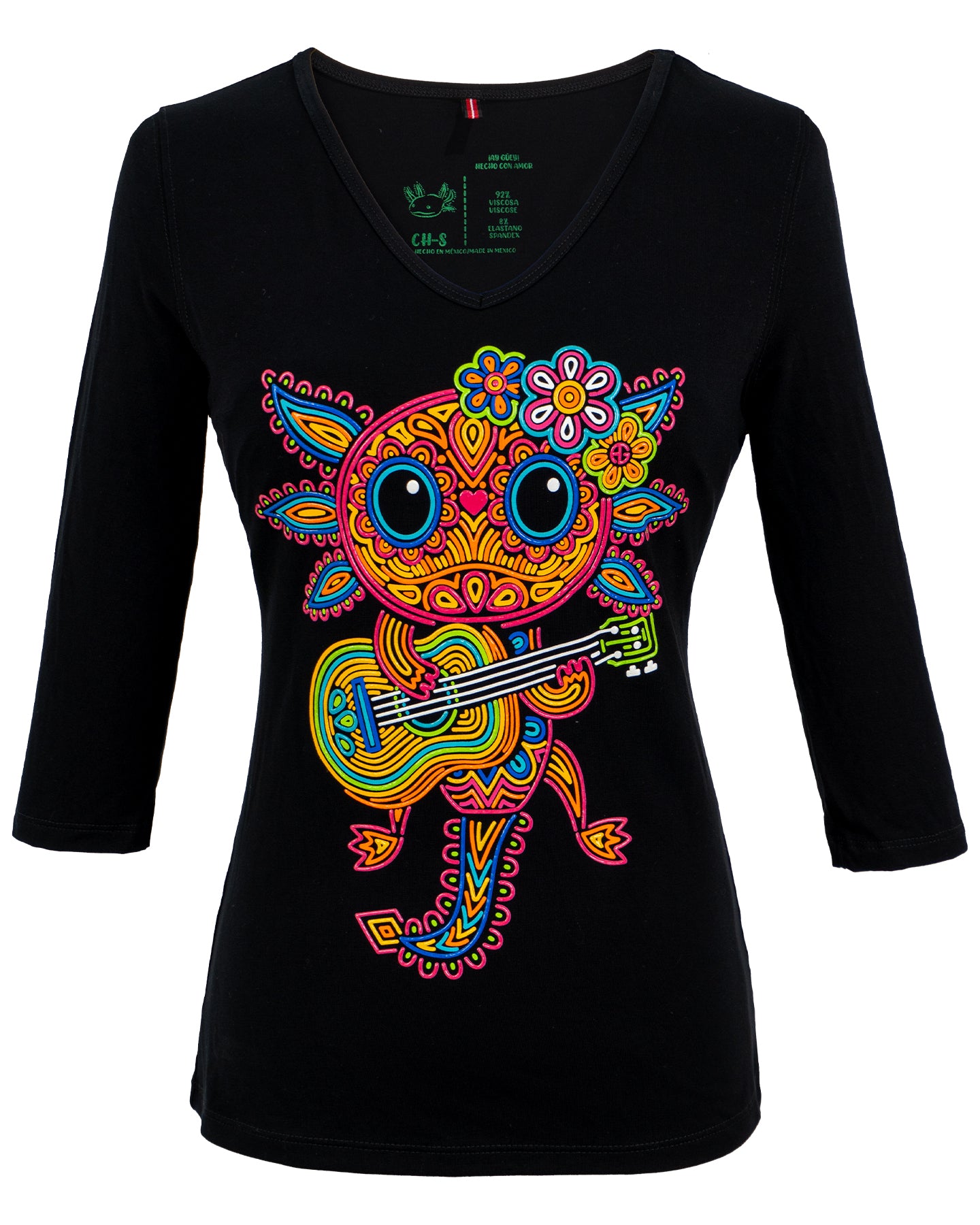 ♦️Playera estampada con aplicación de tinta gel HD transparente para mujer - Modelo AJOLOCHIS