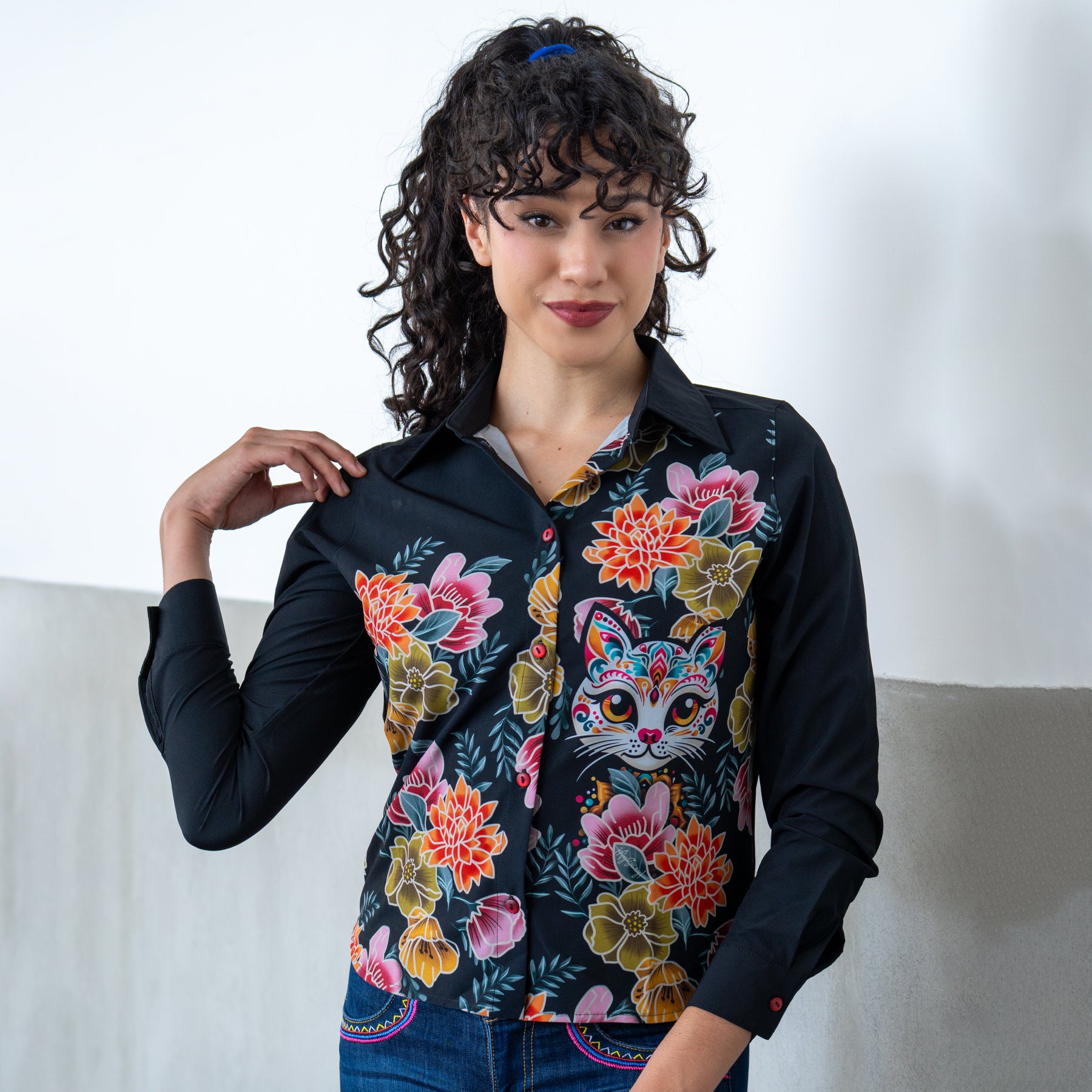 Camisa con botones sublimada para mujer - Modelo SULIBELLA