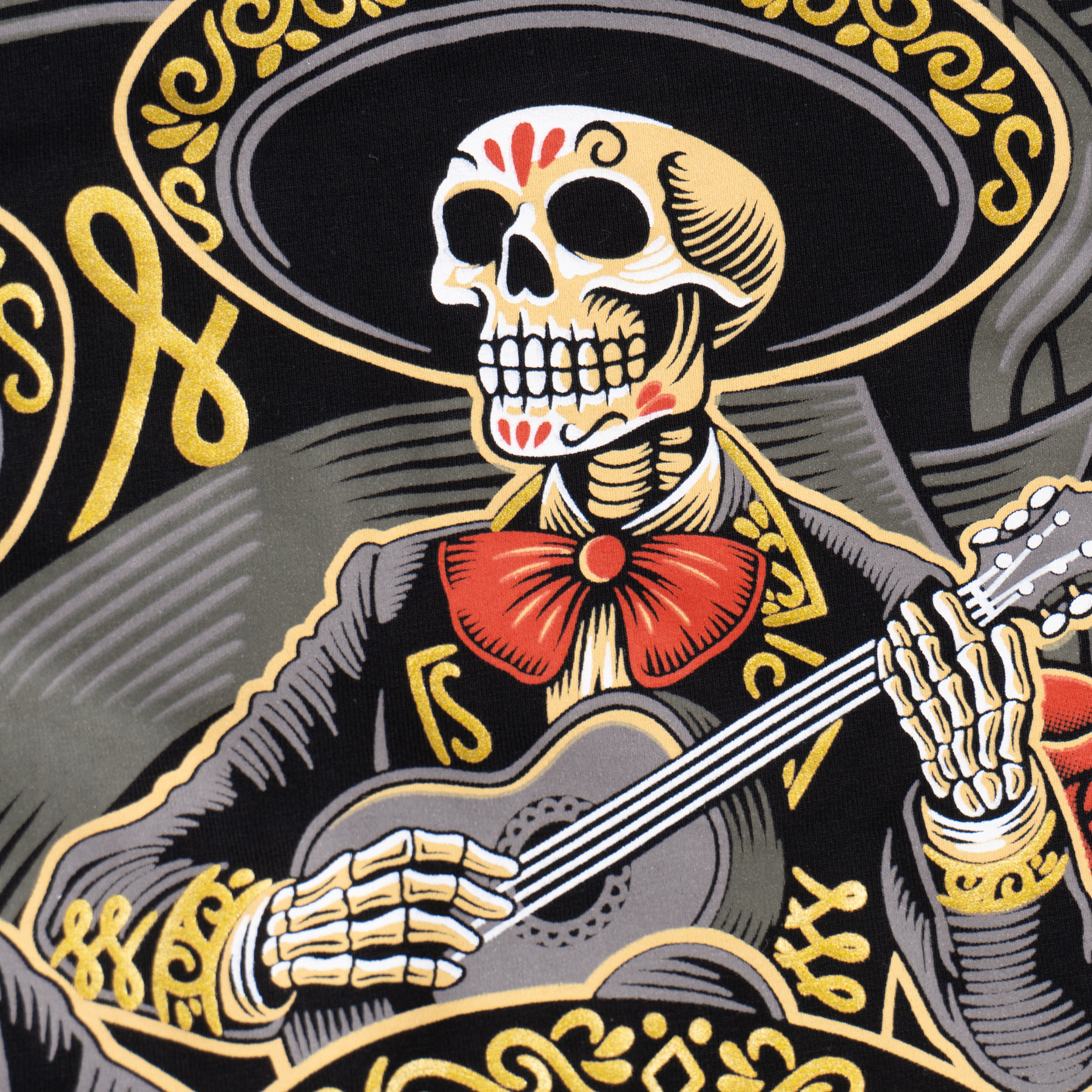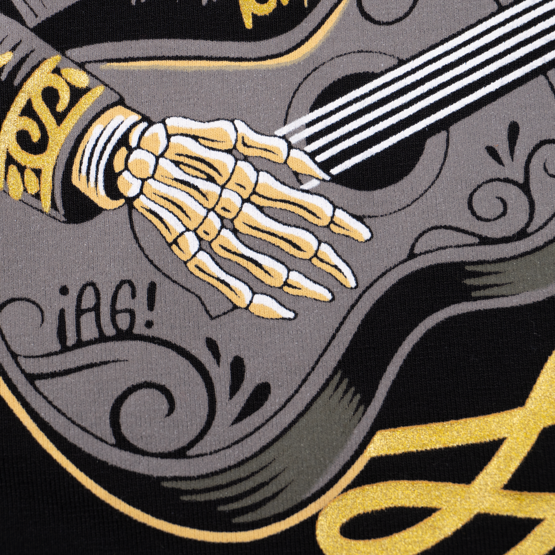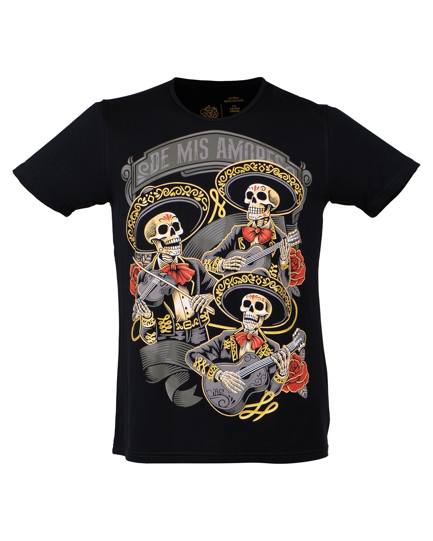 Playera de caballero en color negro inspirada en uno de los patrimonios culturales que son los mariachis un elemento de la cultura mexicana a través del cual se transmiten valores, historia y sentimientos.