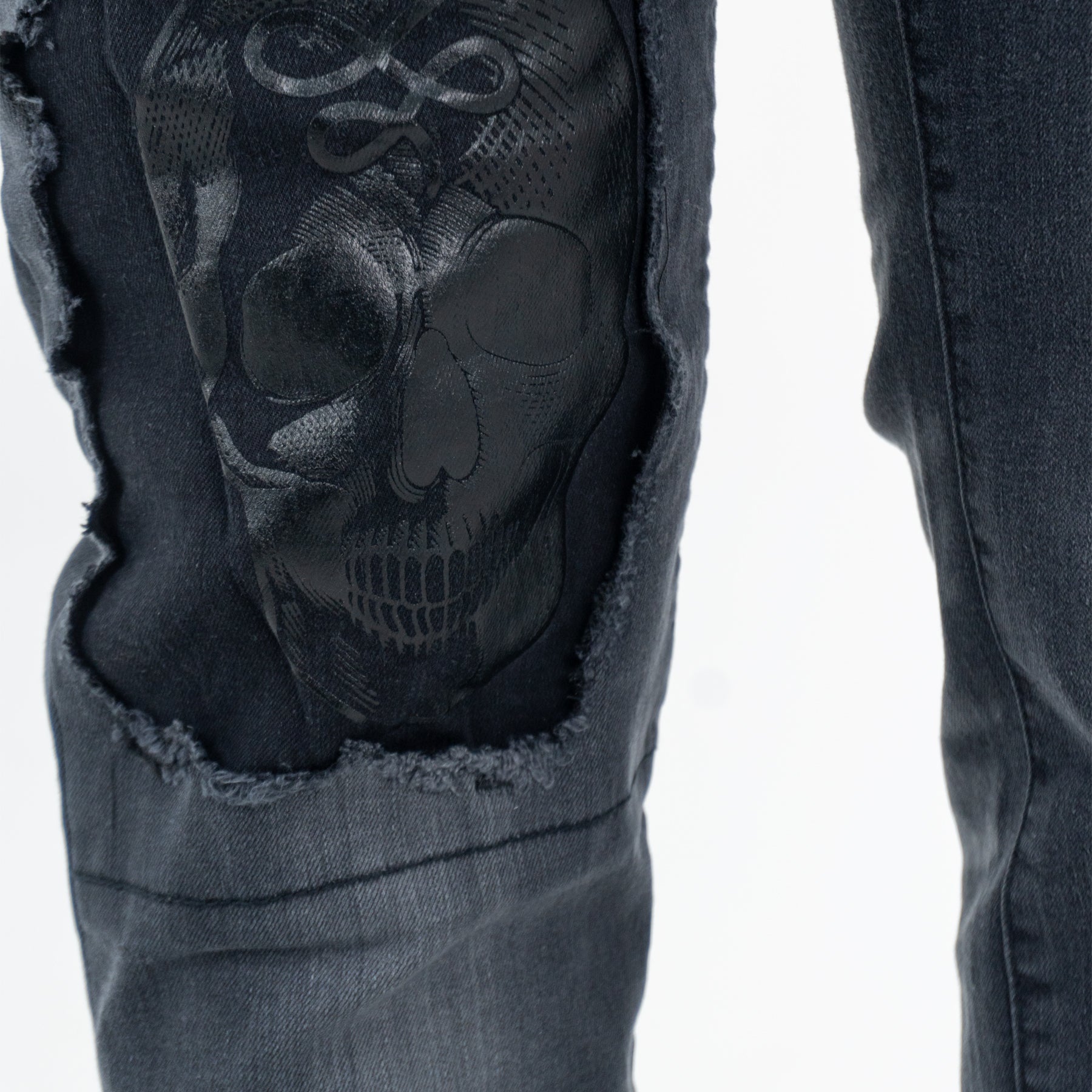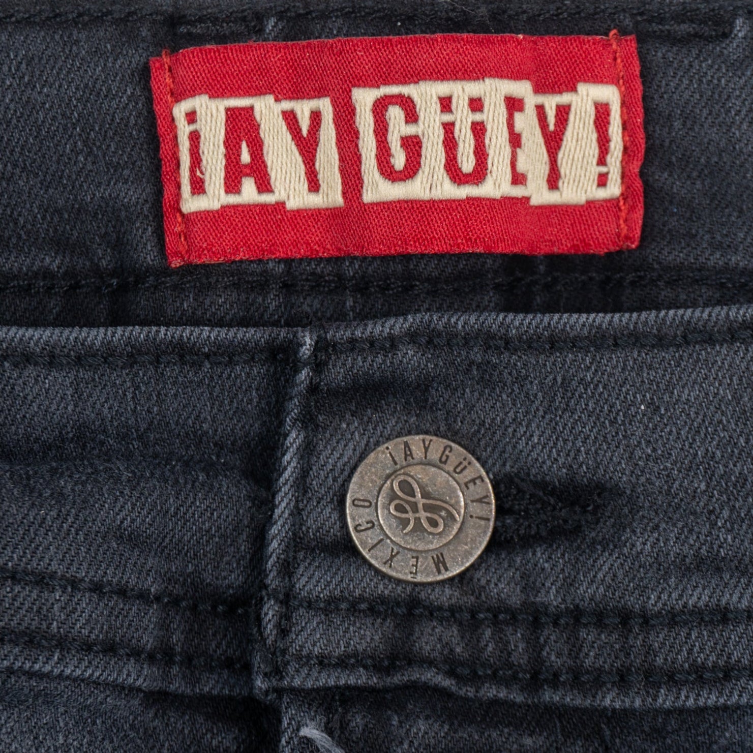 Jeans skinny para caballero con estilo audaz. Diseño moderno con grabado láser de águila en un costado. Corte ajustado para una silueta definida. ¡Añade un toque único a tu look!