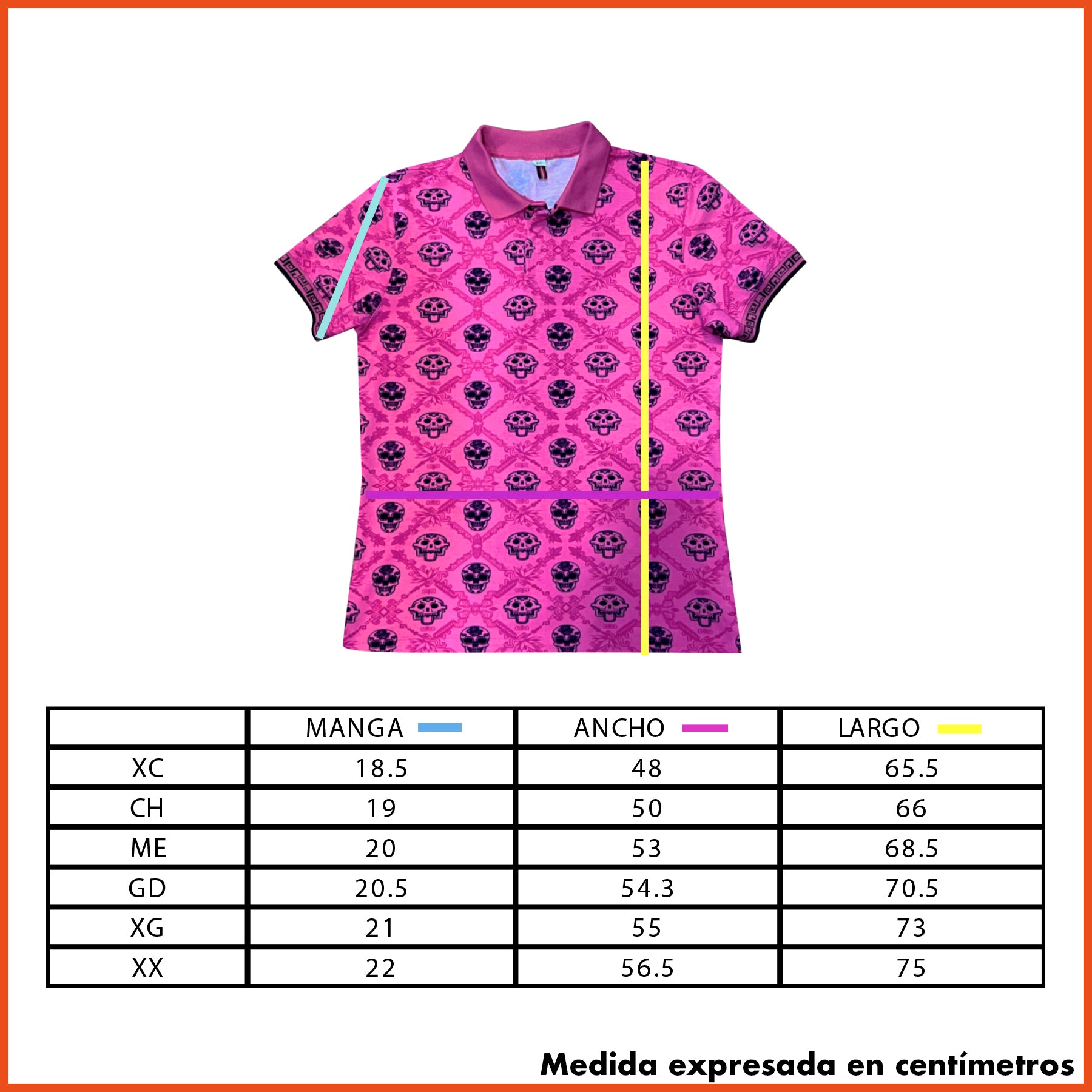 Nuevo corte de caballero tipo polo, adornada con calaveras y detalles inspirados en la mitología azteca.