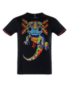Esta camiseta celebra al ajolote, símbolo de la resiliencia y la magia de México, a través de una reinterpretación artesanal en técnica de pedrería. Cada punto de color evoca a la alegría, fusionando lo ancestral con lo contemporáneo