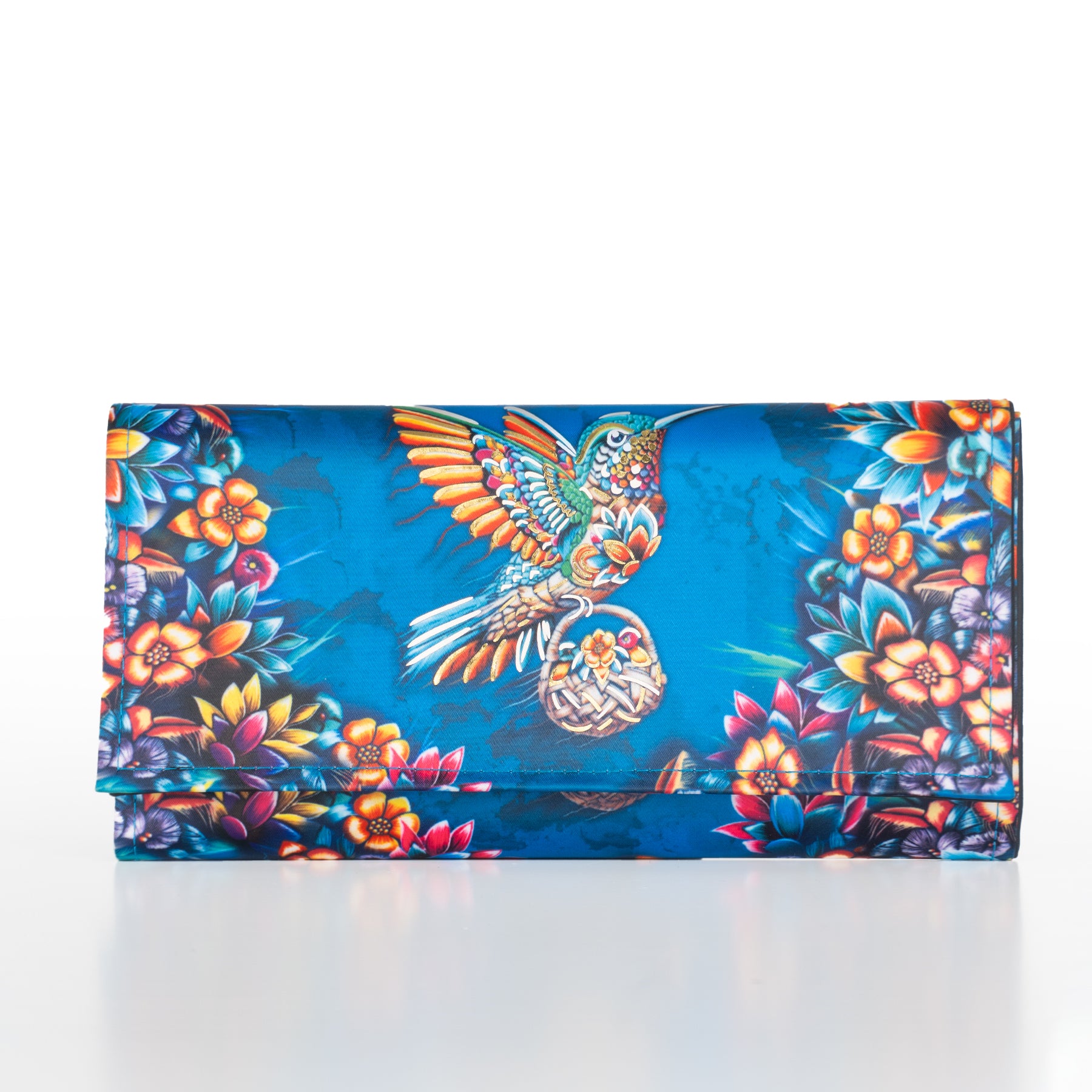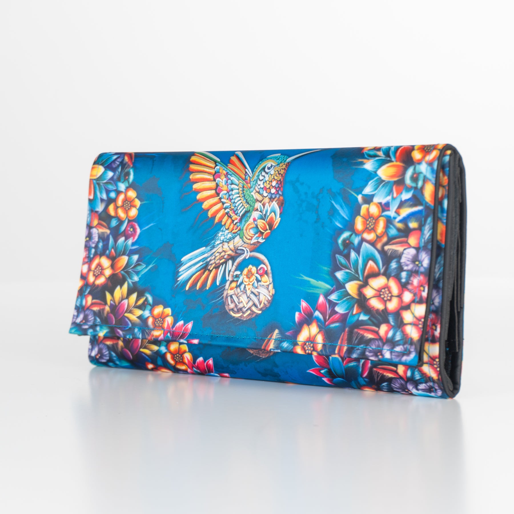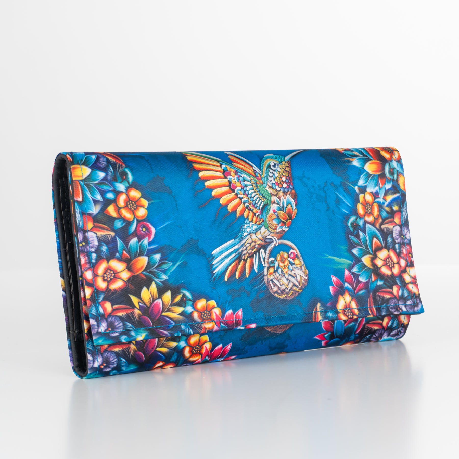 Cartera de dama inspirada en el colibrí y las flores del campo mexicano.