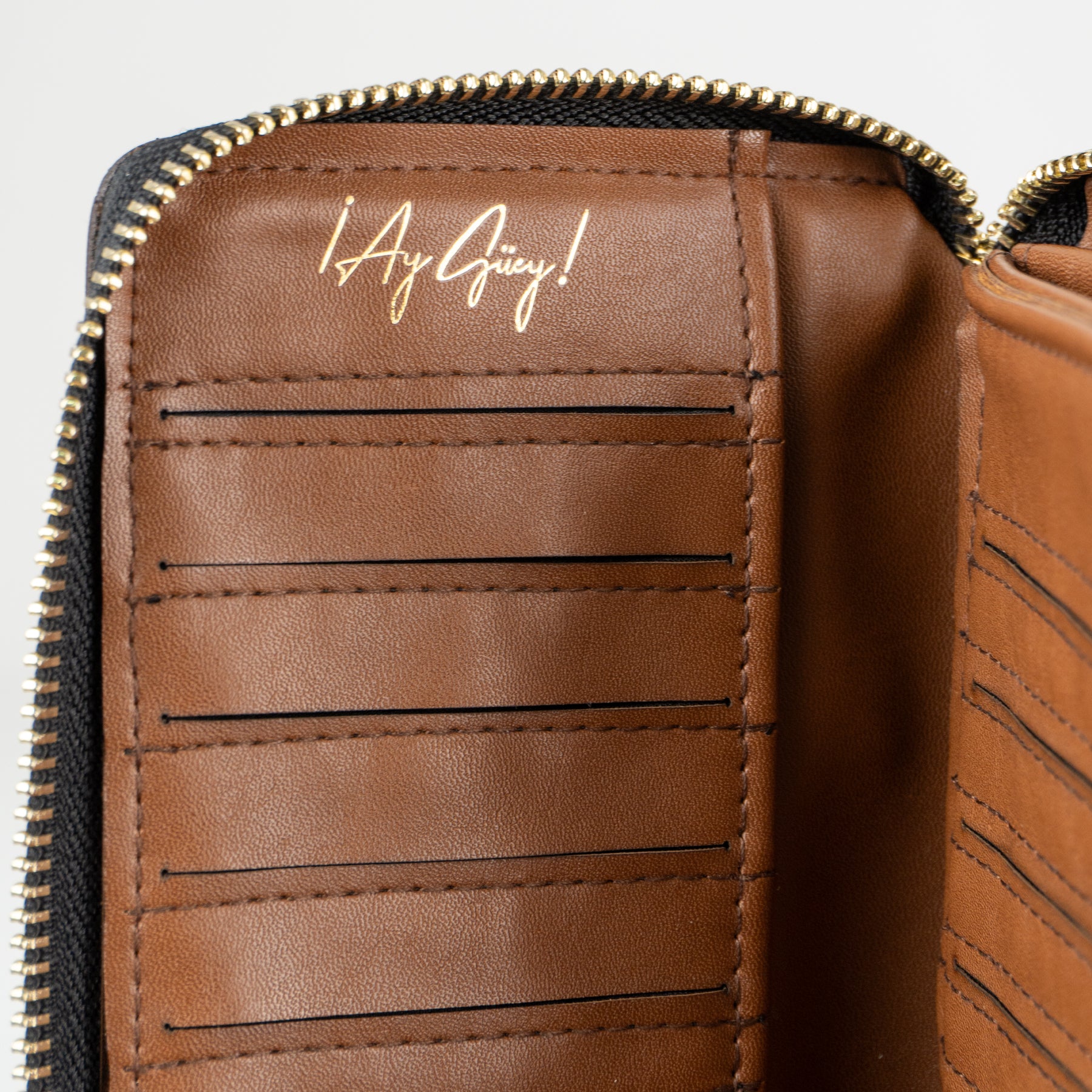 Cartera amplia de dama, con 3 bolsillos, tarjeteros y monedero.