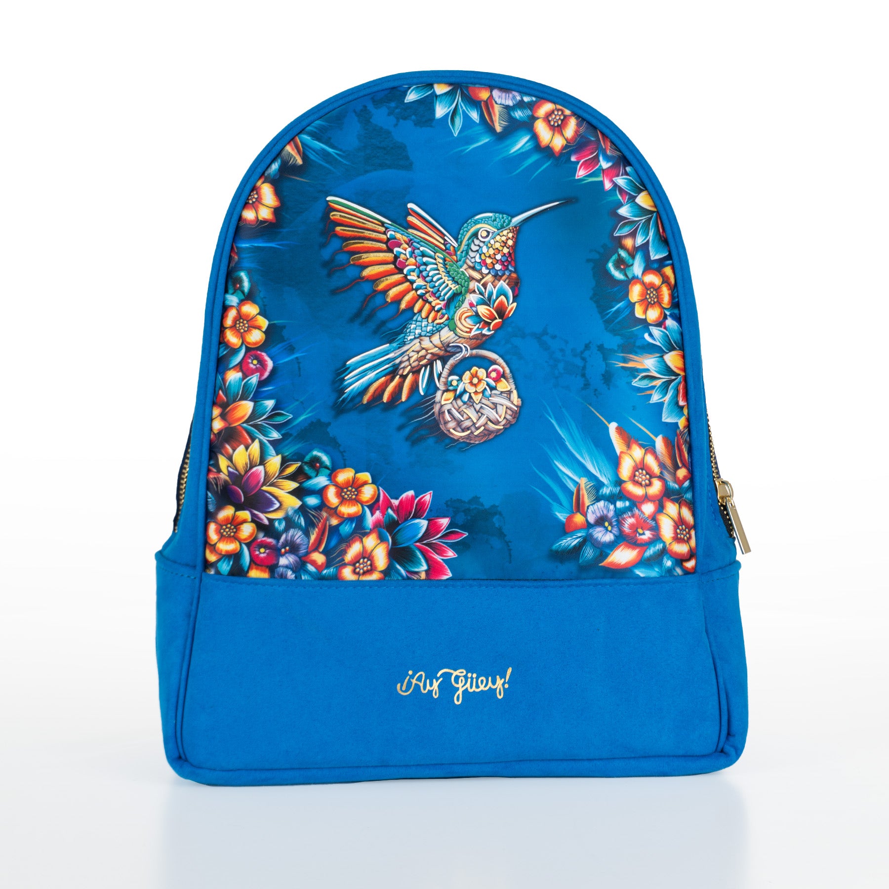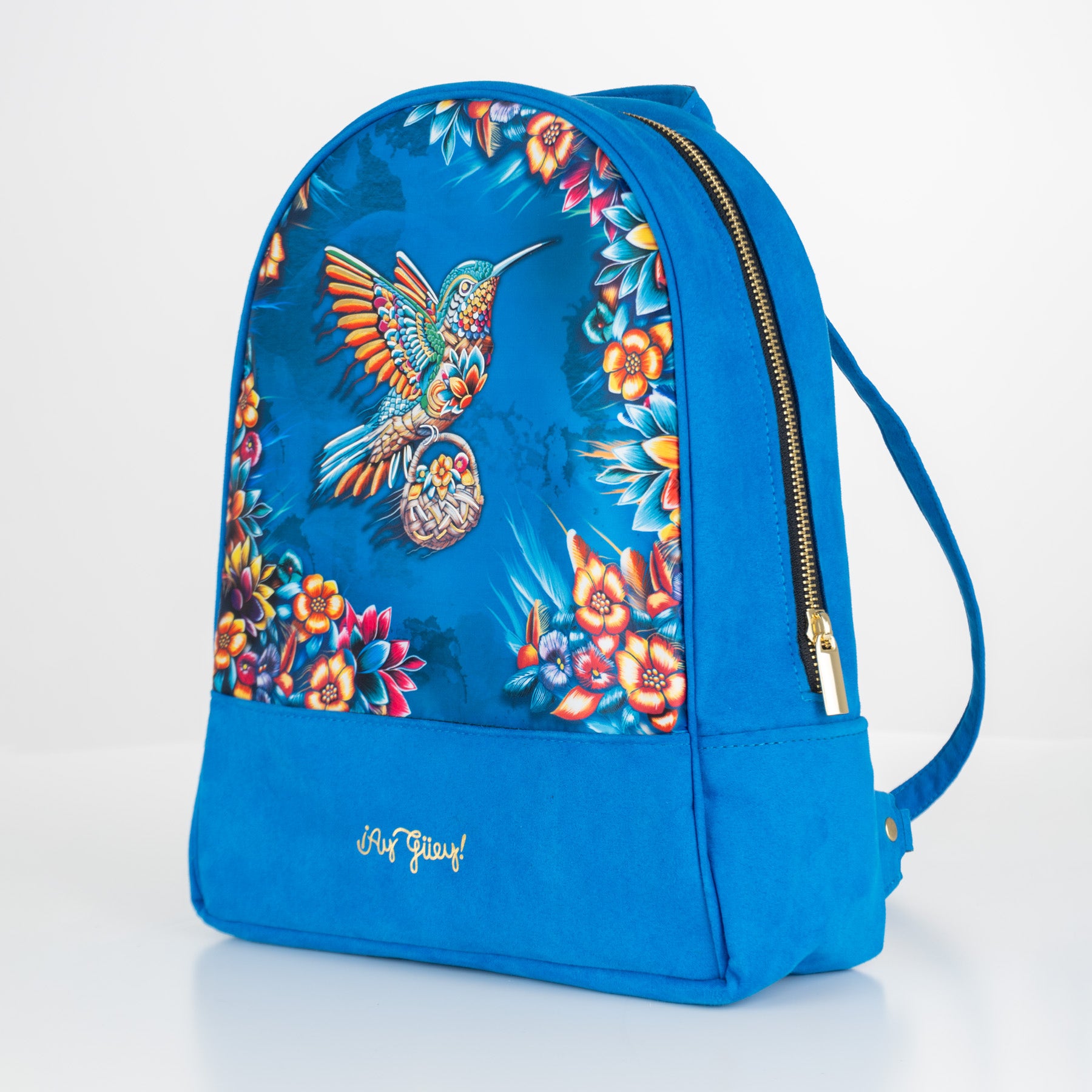 La mochila perfecta para llevar tus objetos de forma cómoda y segura. Con sus vibrantes tonos azules, inspirado en el Colibrí y las flores primaverales, podrás añadir un toque de estilo único a tu look. ¡No sacrifiques funcionalidad por moda!