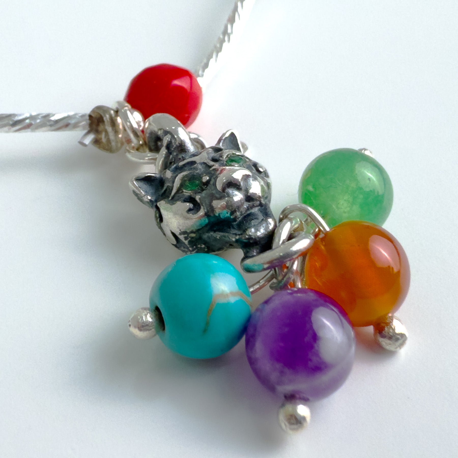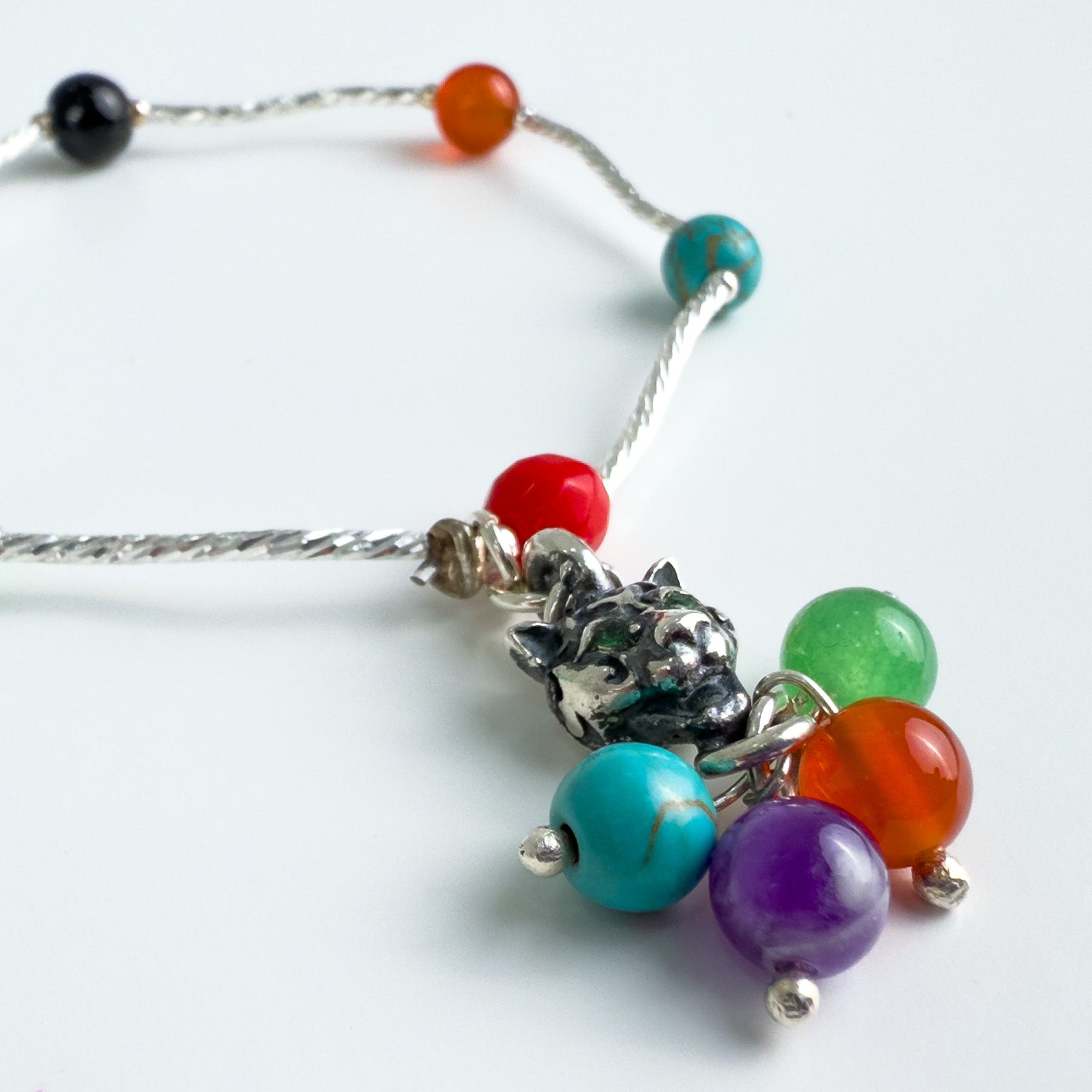 Composición: Cornalinas, jadeita, ónix, turqueza, circonia y plata mexicana ley .925.