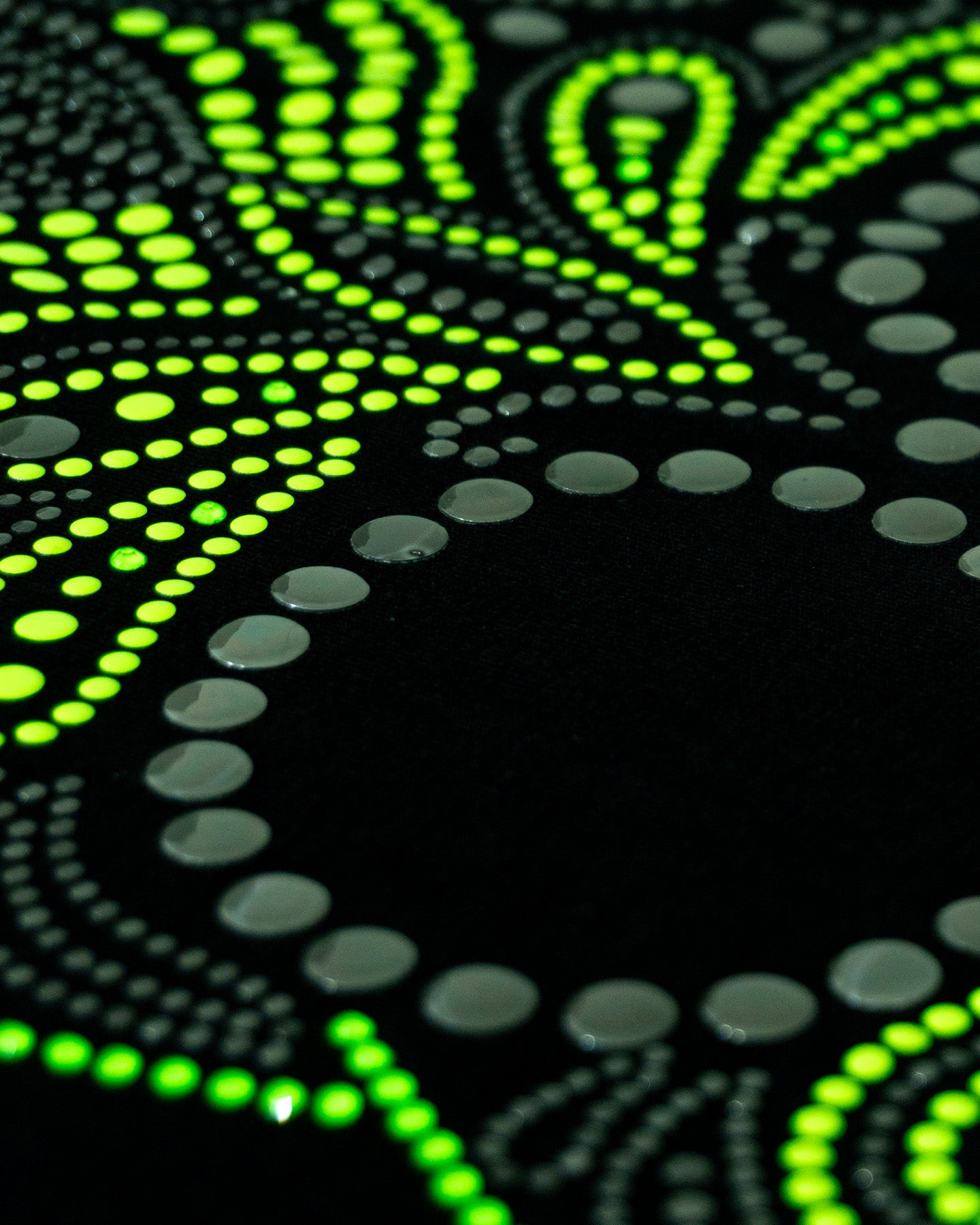 Inspirada en el maíz, el grano sagrado y fundamental que, según las leyendas, dio origen a la humanidad en el México antiguo, esta calavera floral y geométrica celebra la vida y la fertilidad. Los patrones circulares y orgánicos en tonos verde vibrante (neón) y gris claro reflejan las semillas, la siembra y la cosecha, pilares de la identidad y el origen de nuestro pueblo.