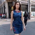 Vestido de mezclilla con motivos bordados - Modelo CITLALI
