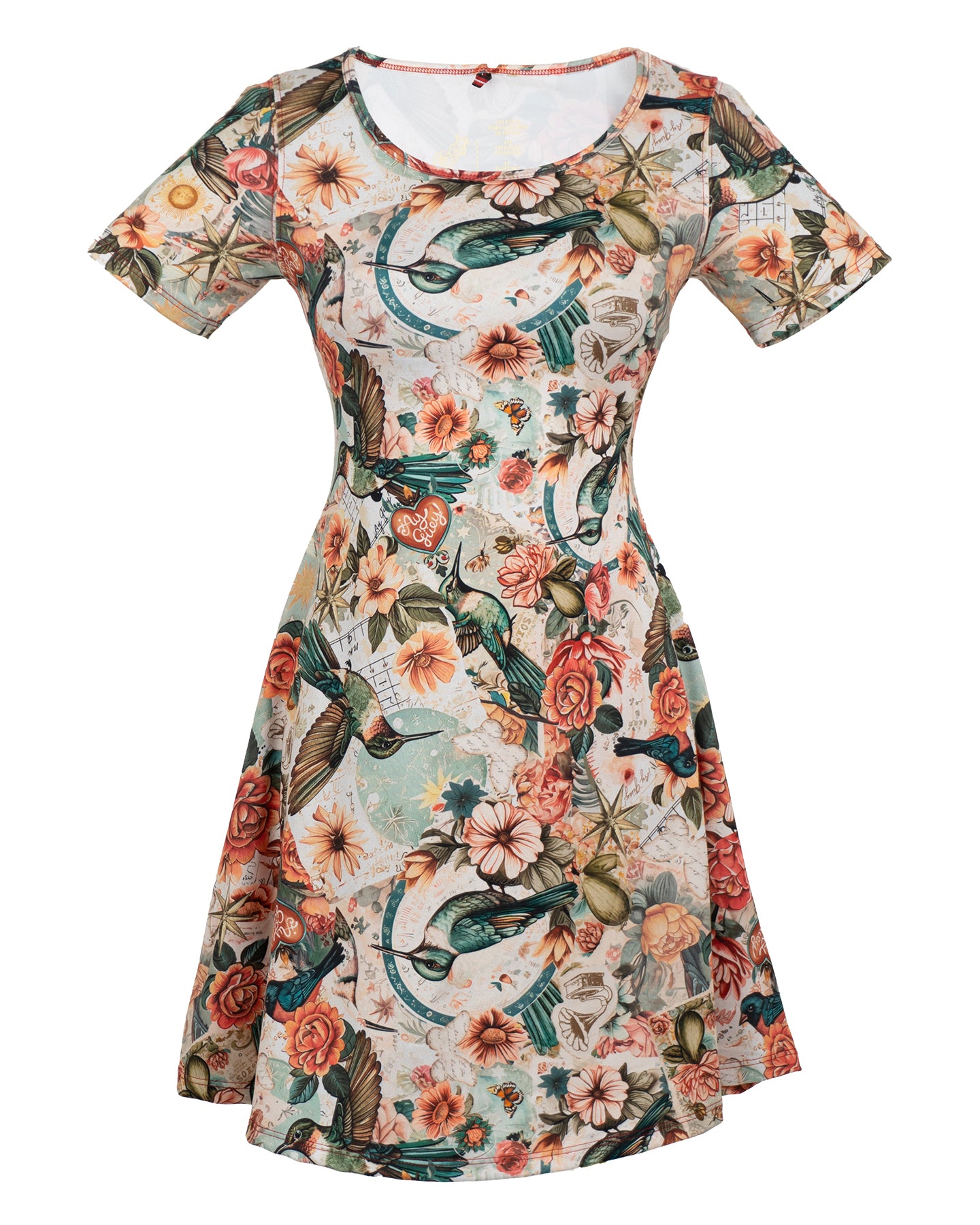 Vestido estampado full print manga corta - Modelo LAS BRISAS