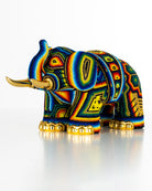 Esta figura de elefante fusiona la visión contemporánea de Menchaca Studio con el legado espiritual del pueblo Wixárika, cuyos artesanos plasman visiones sagradas mediante miles de cuentas de cristal. Cada pieza es única e irrepetible, por lo que el diseño y los colores varían siempre; aunque la base de molde se mantiene constante, cada intervención es un objeto original.