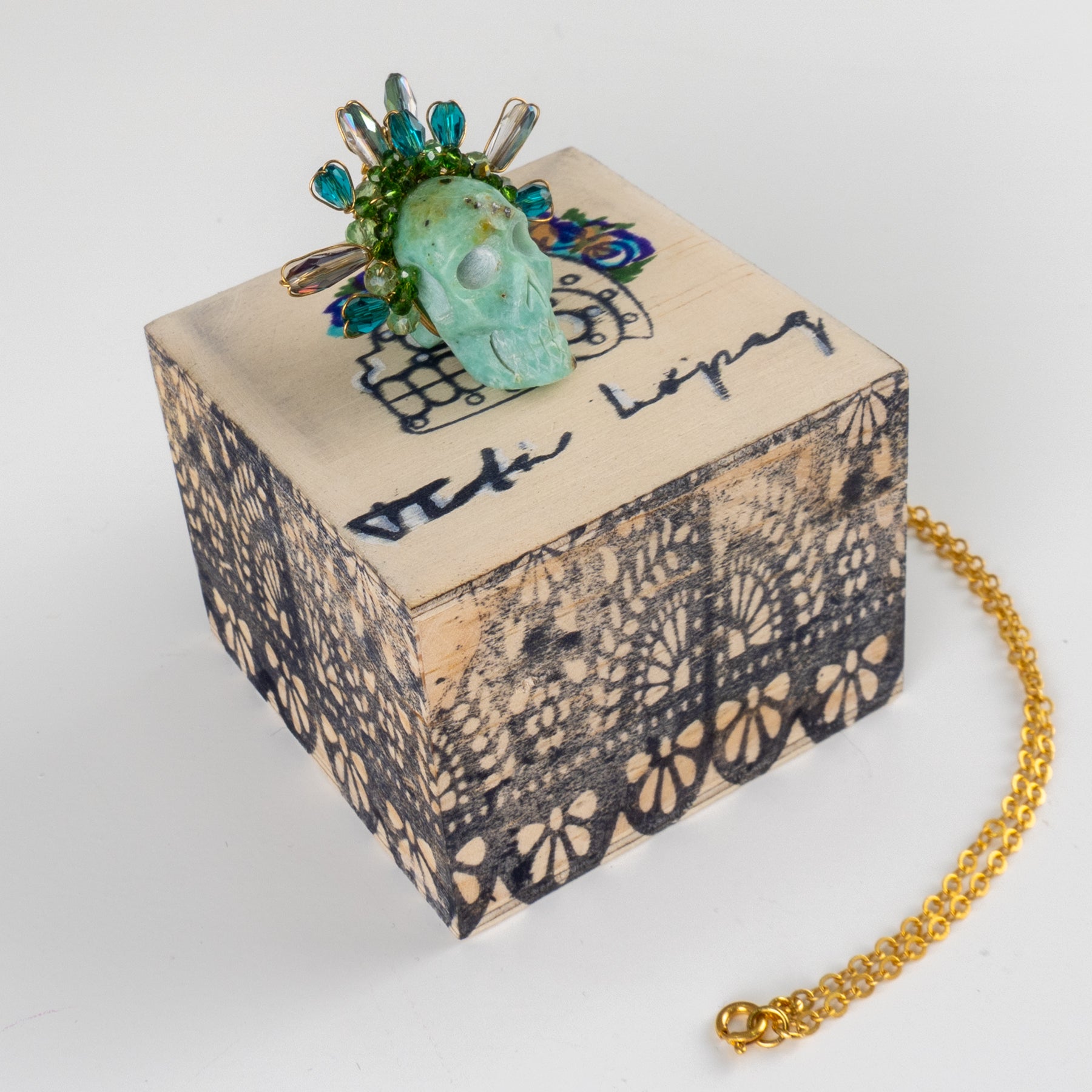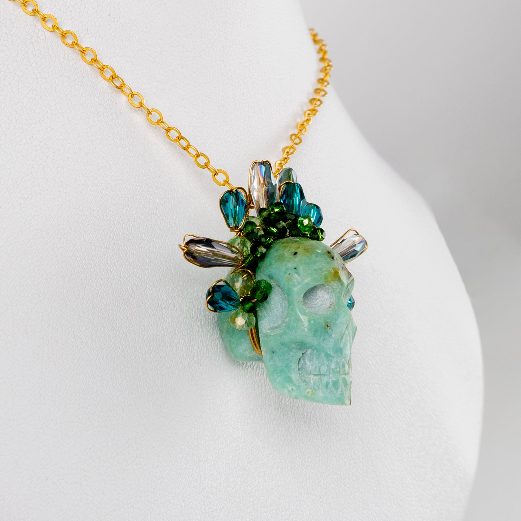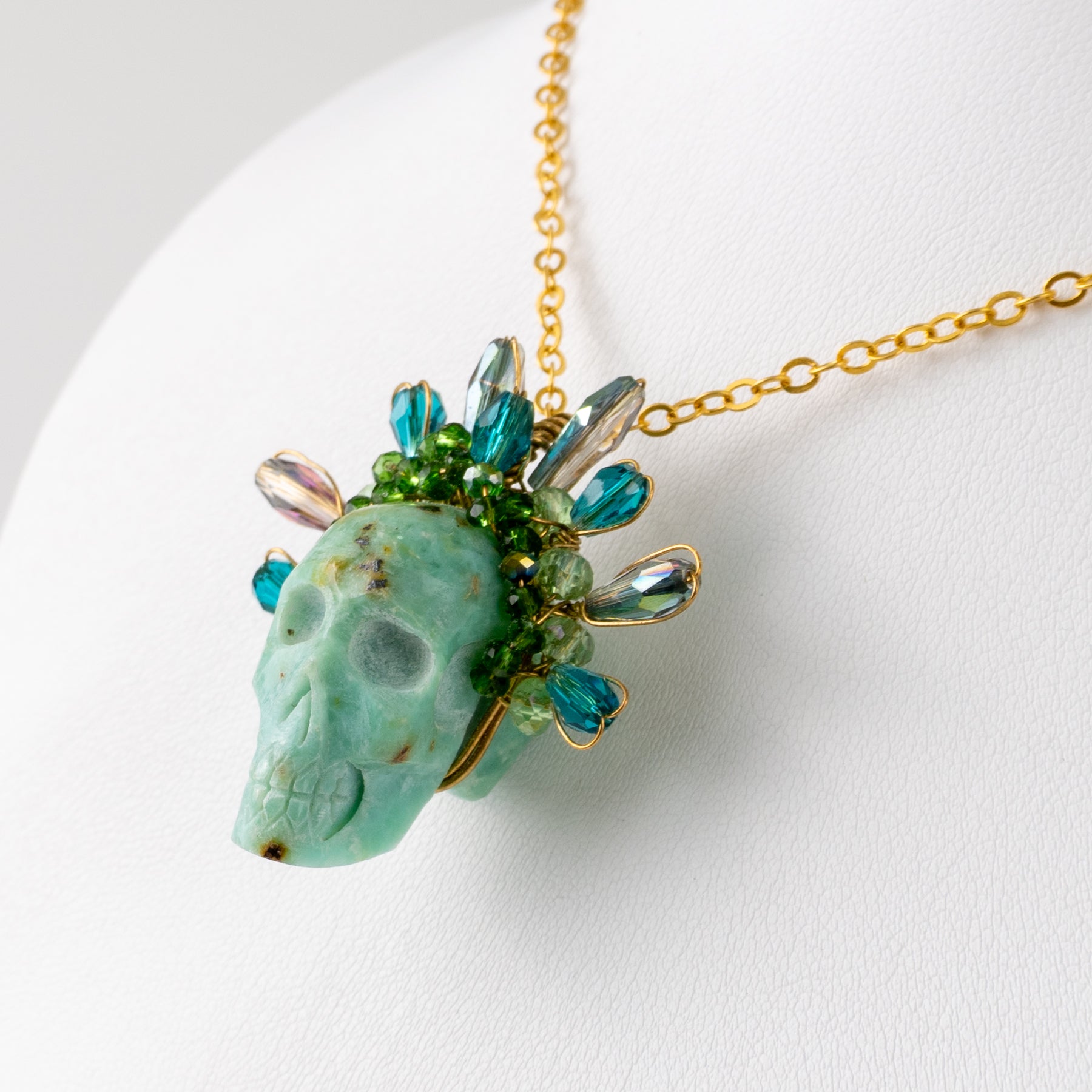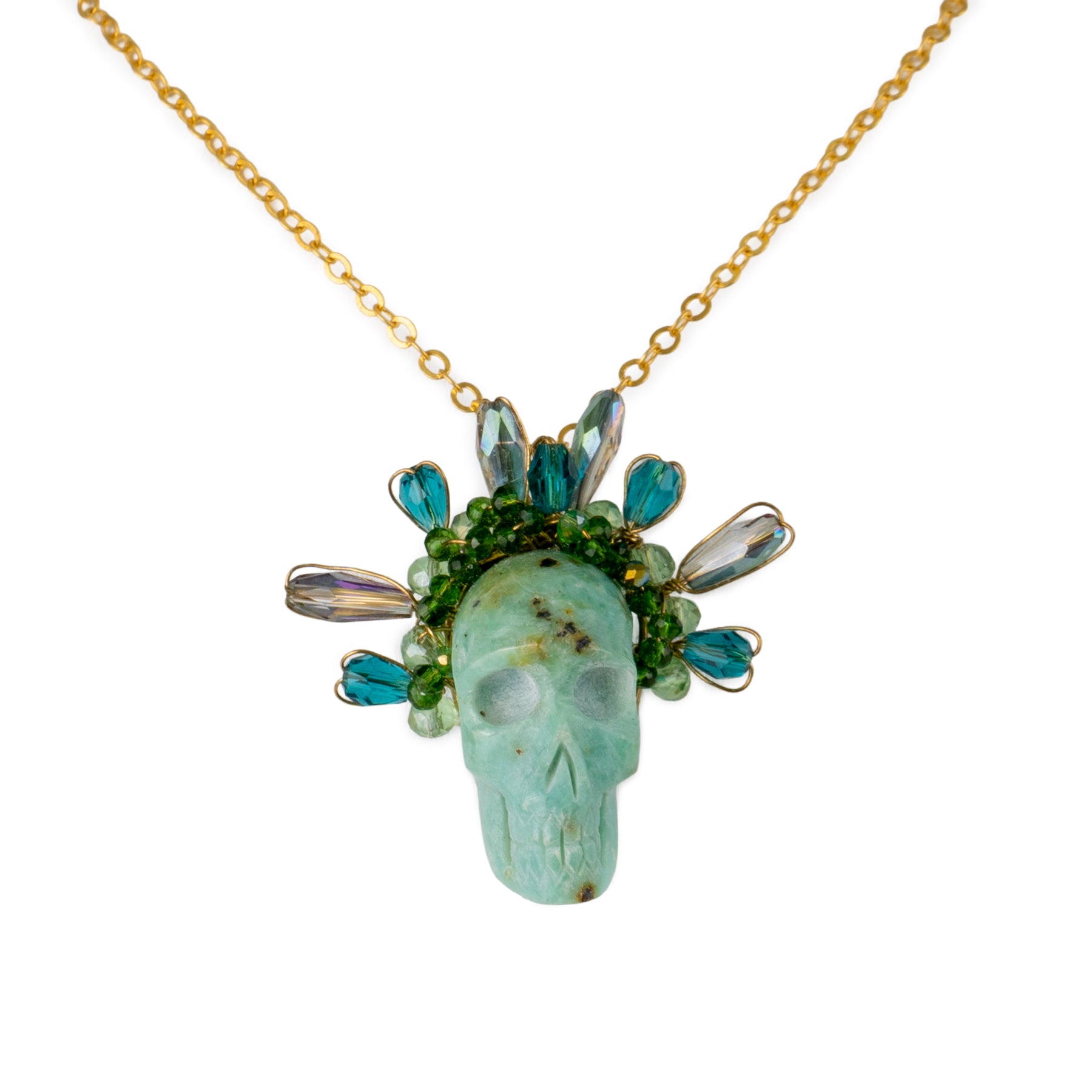 Collar con dije de cuarzo en forma de catrina - Modelo CUAOMI Turquesa