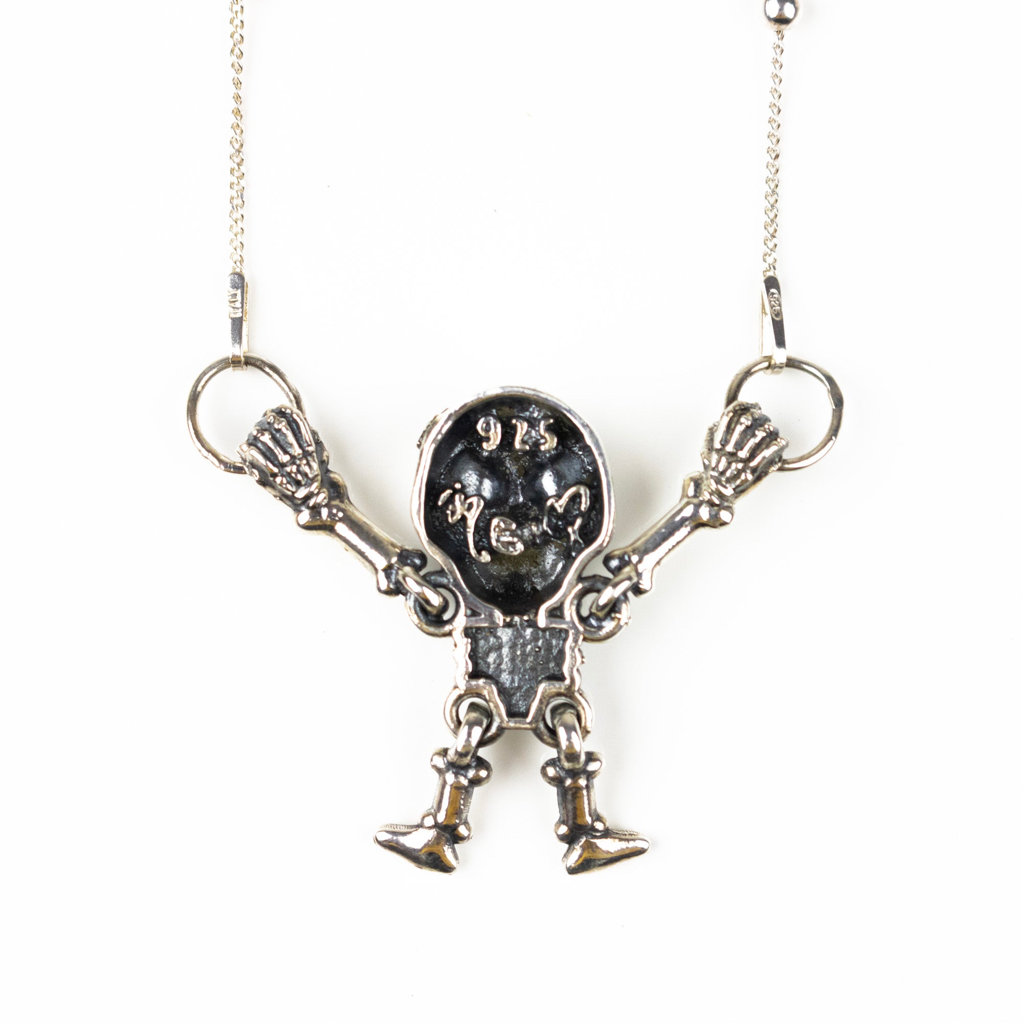 Esta joya es una creación de Zanfeld, un taller platero con más de 30 años de experiencia, ubicado en el mágico pueblo de Taxco de Alarcón. Zanfeld, en colaboración con ¡Ay Güey!, presenta esta colección que celebra la maestría de seis generaciones de joyeros, quienes han perfeccionado las técnicas artesanales para crear piezas de plata de la más alta calidad.