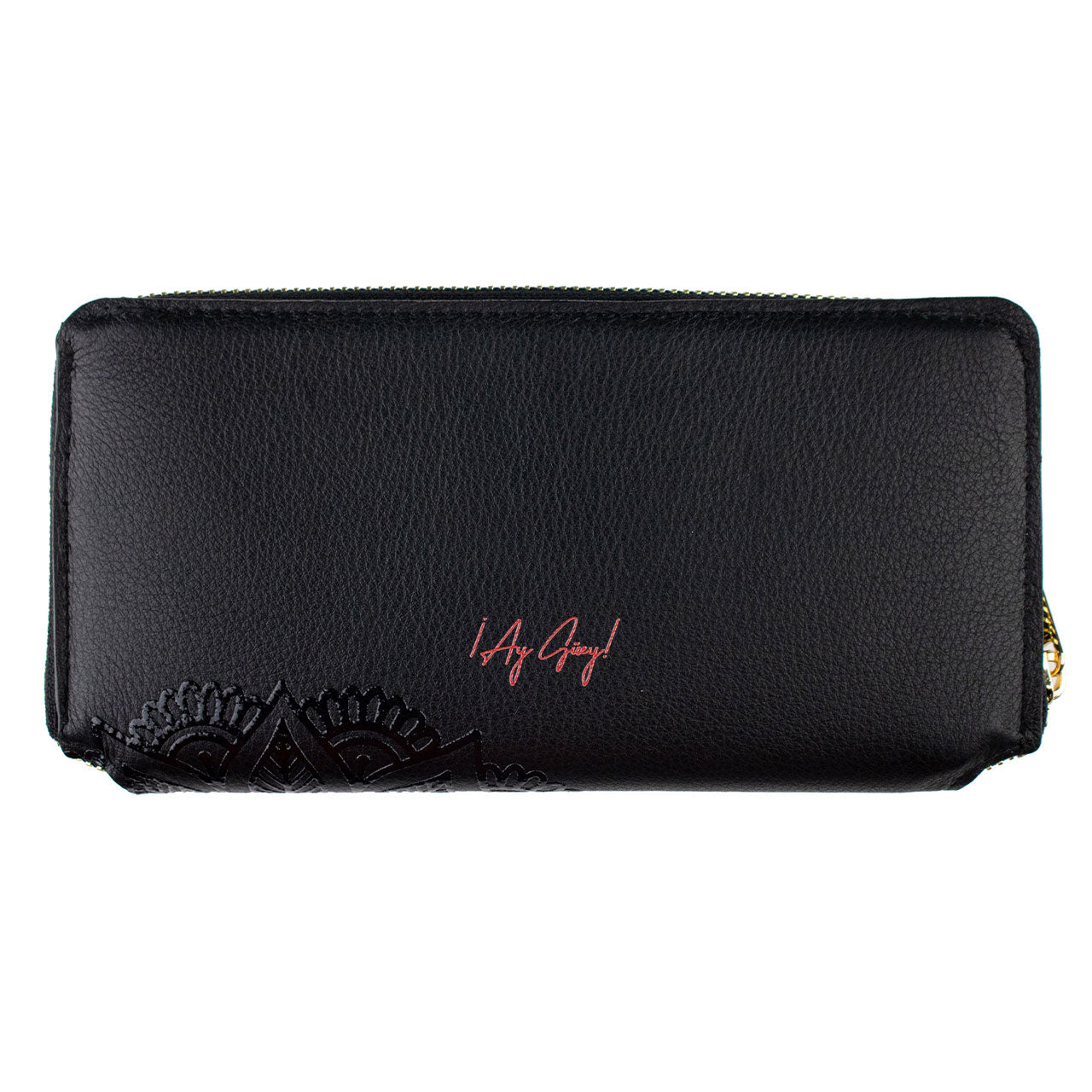 Cartera amplia de dama, con 3 bolsillos, tarjeteros y monedero.