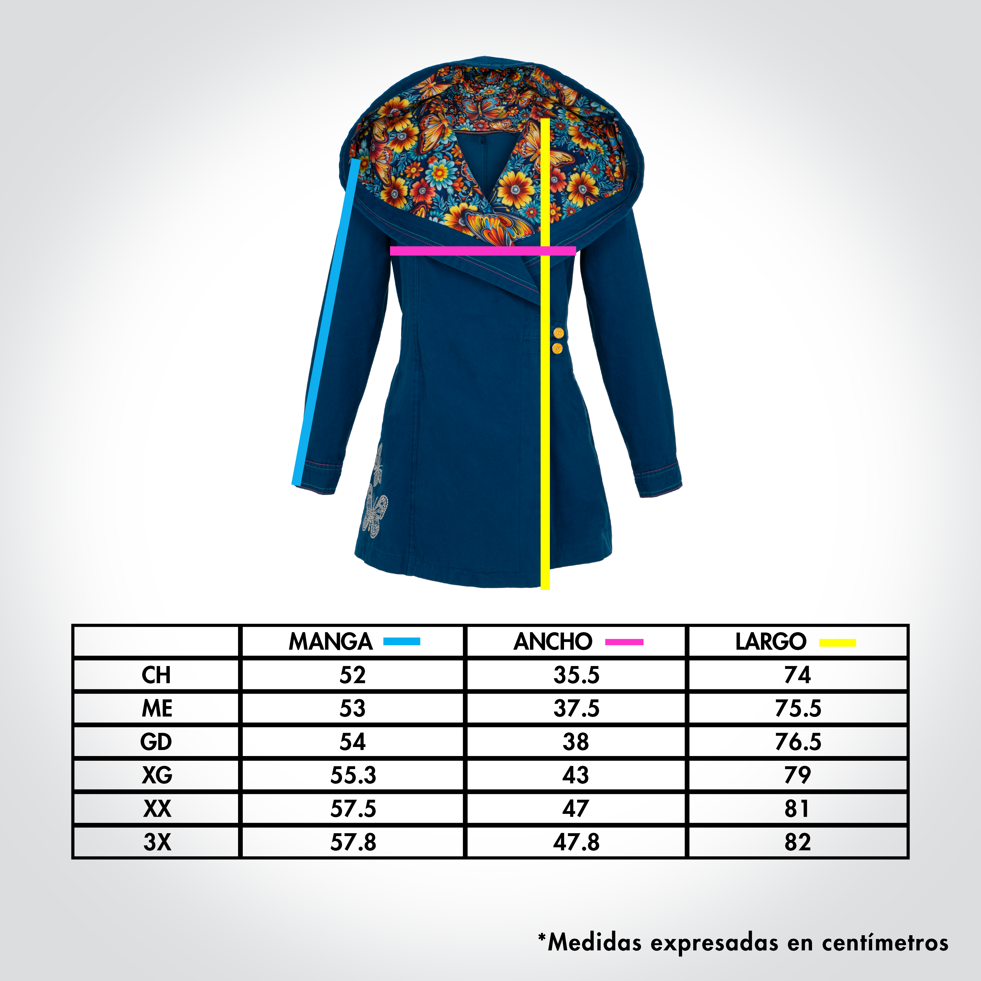 Chamarra tipo abrigo. La Lola es mucho más que una simple prenda de abrigo. Con su colorido estampado floral y detalles bordados, esta chaqueta es elegante, versátil y única, destacando en cualquier espacio.
