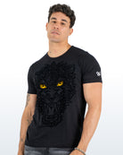 Playera estampada con Flock negro sobre negro para hombre - Modelo BALAMCOATL