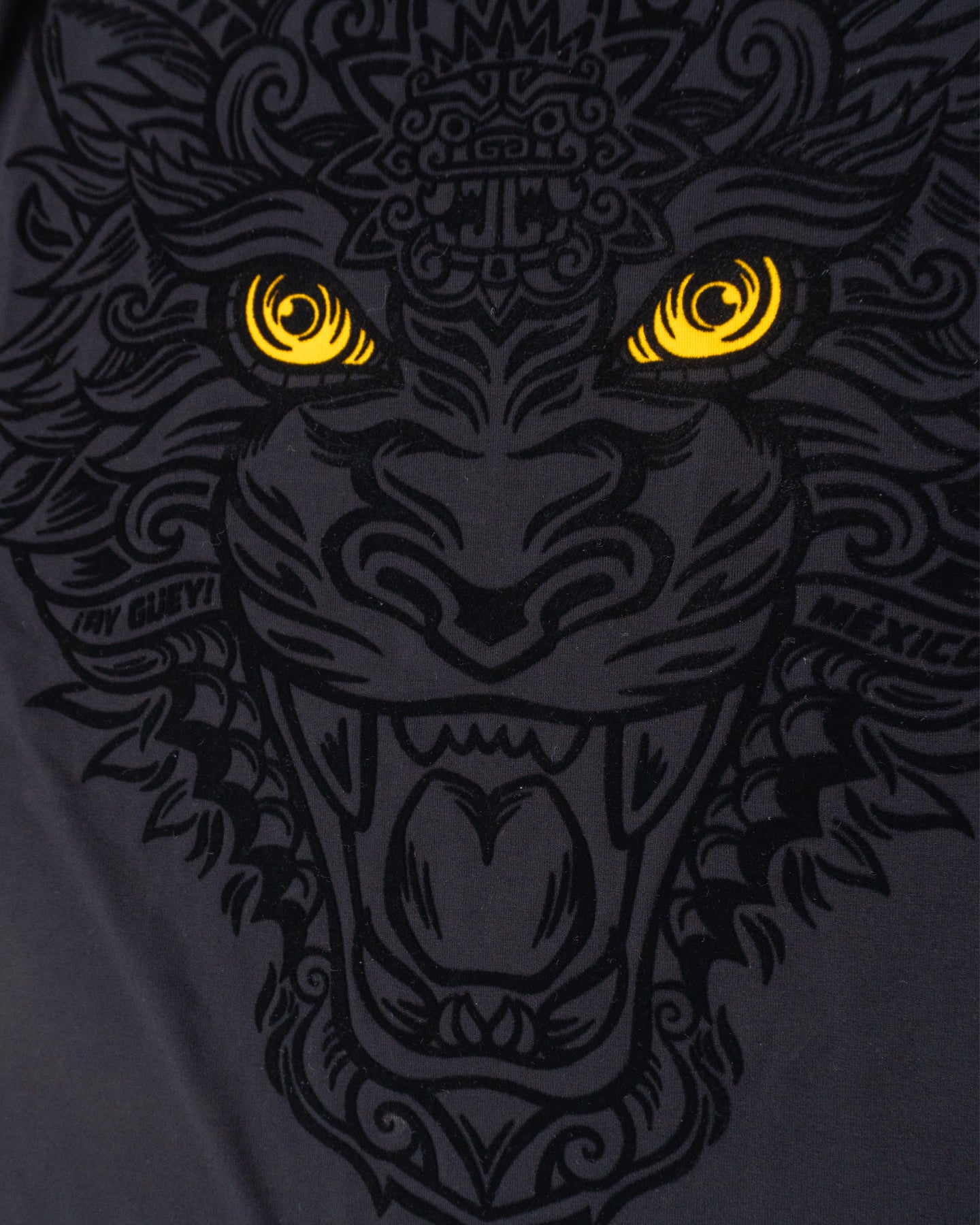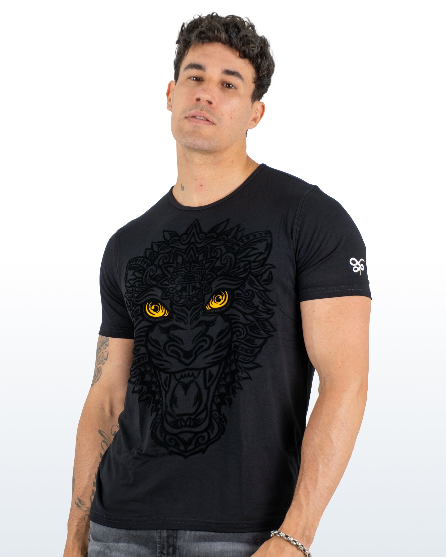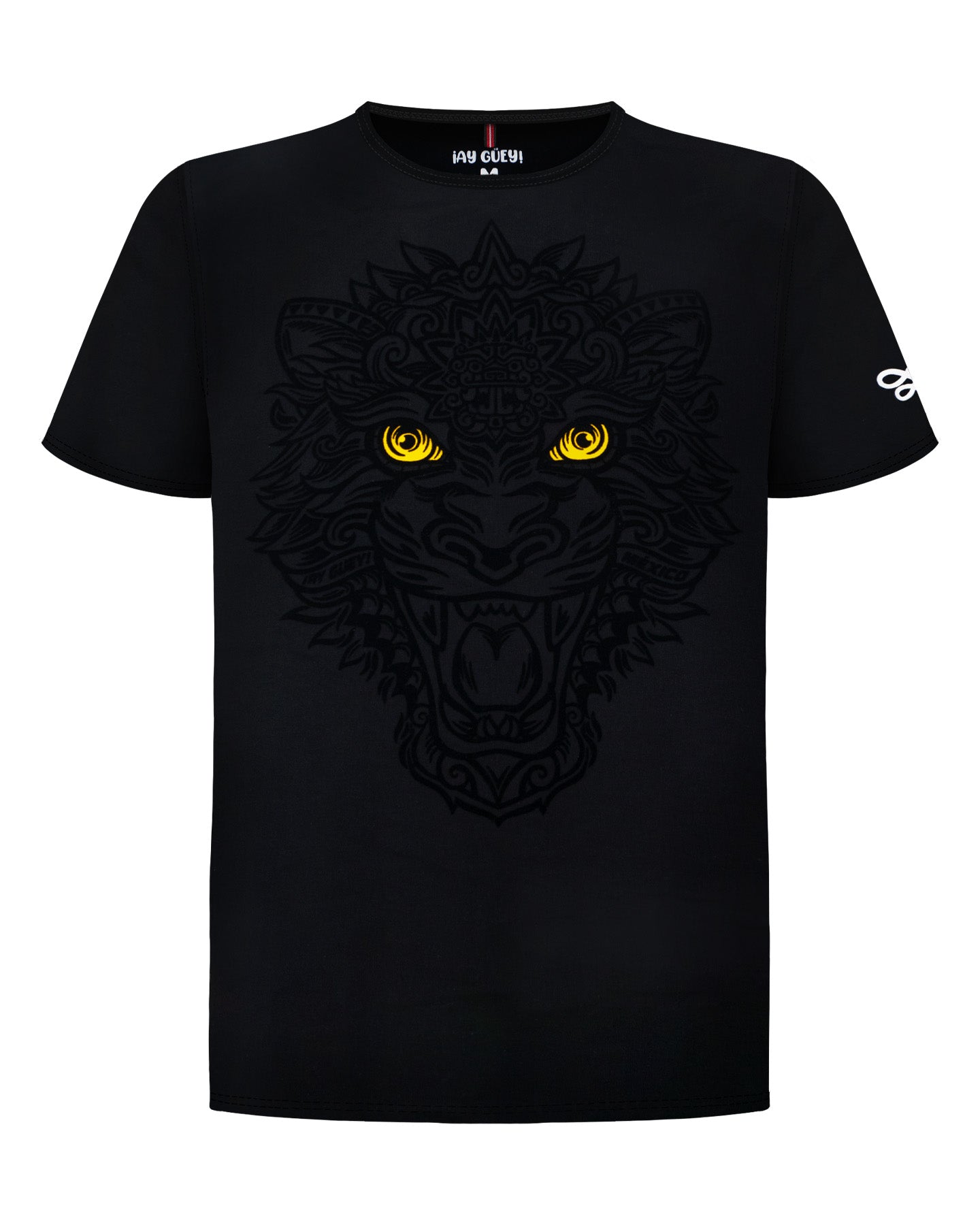 Inspirada en la fuerza ancestral de los guerreros jaguar del México prehispánico, esta playera representa el poder oculto que todos llevamos dentro. El diseño en negro sobre negro genera un efecto visual sobrio y elegante, que solo revela sus detalles al acercarse, como un secreto que espera ser descubierto.
