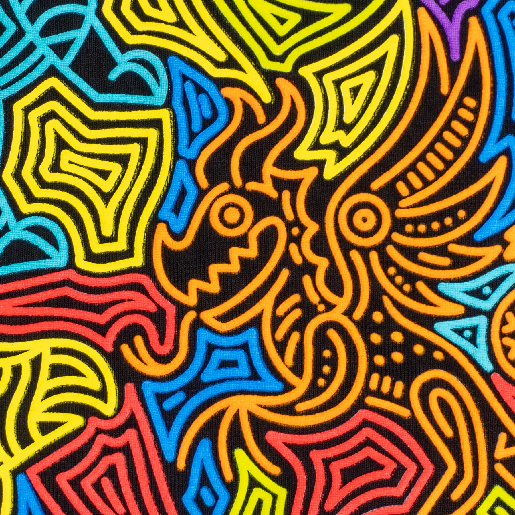 Inspirada en las criaturas míticas más coloridas y vibrantes, esta prenda te transportará a un mundo lleno de magia y tradición. Su diseño de clavera, elaborado con líneas continuas, captura la esencia de los alebrijes y te conecta con el arte popular mexicano.