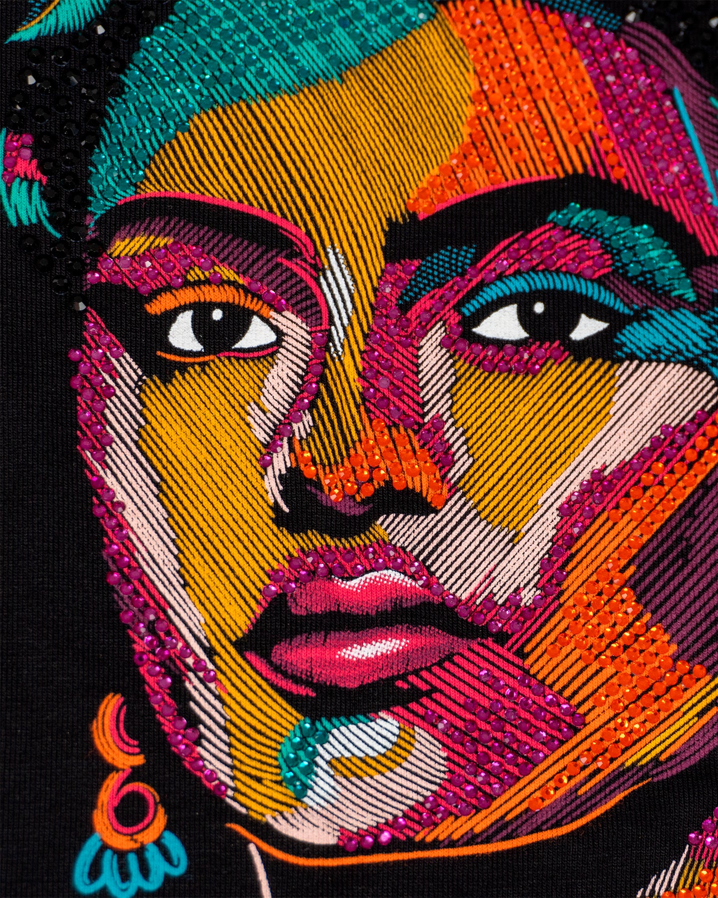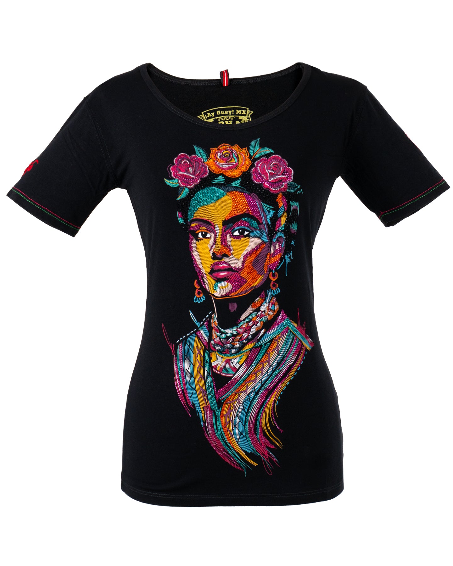 Playera estampada con aplicación de pedrería para mujer - Modelo FRIDA NYX