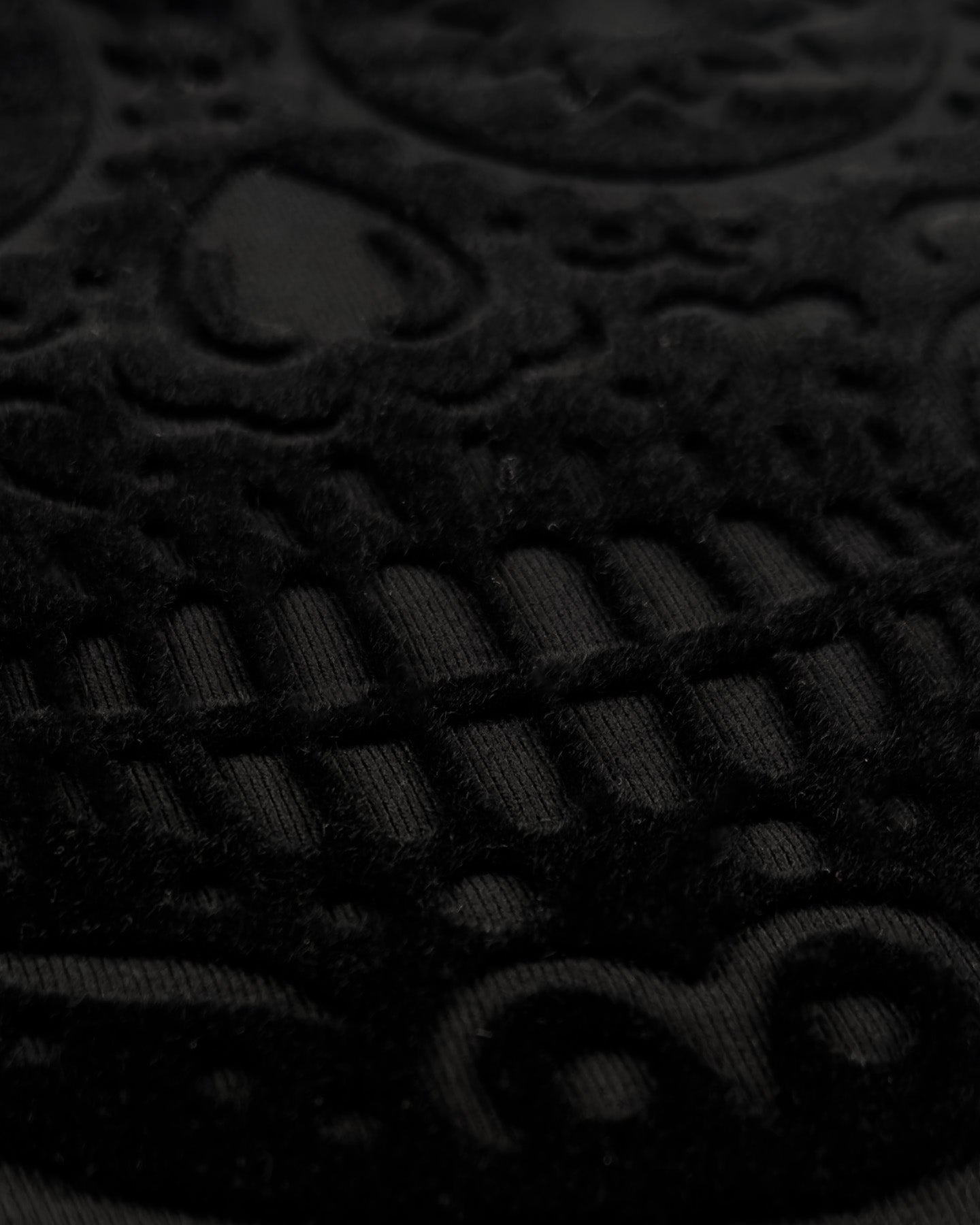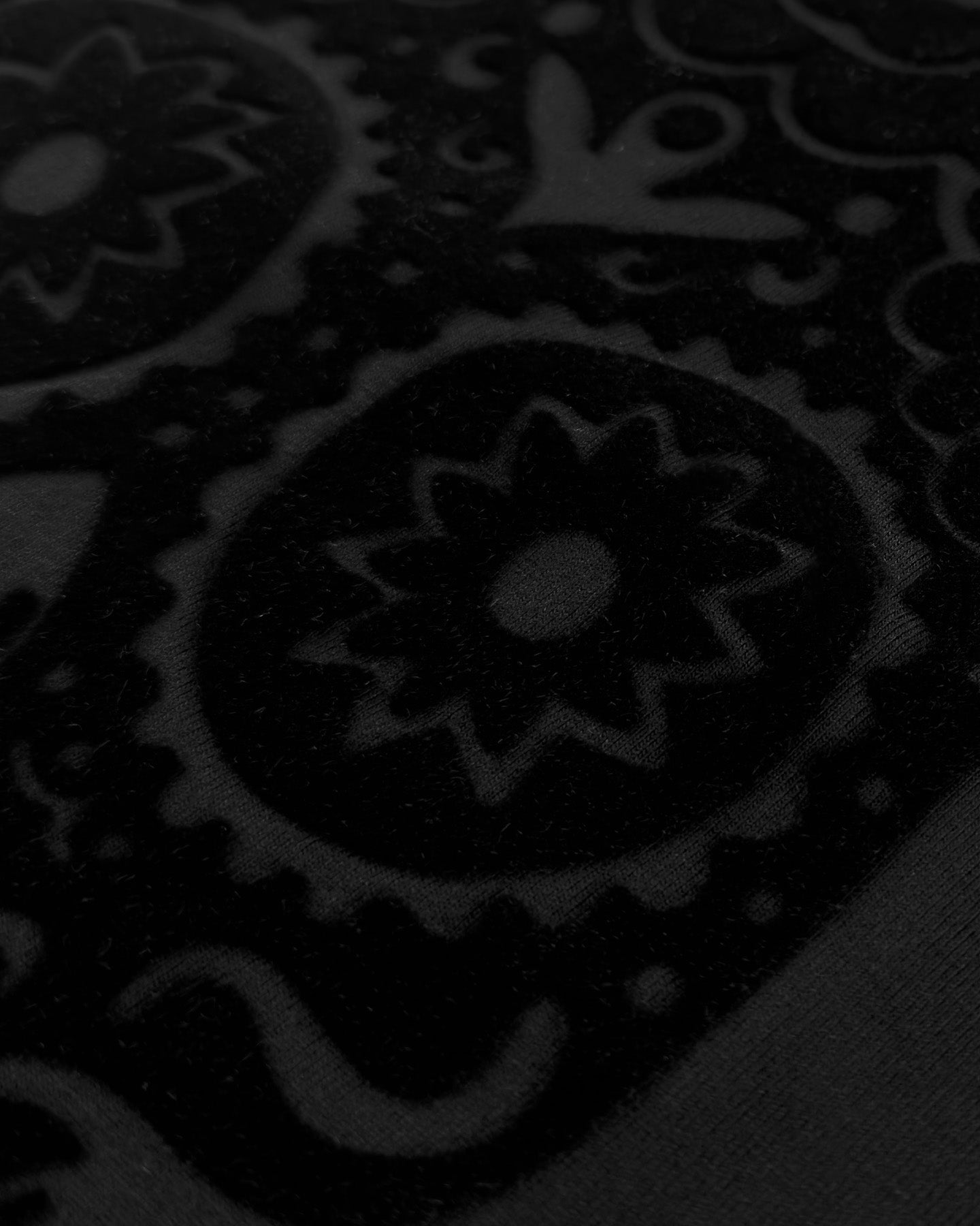 Playera estampada con Flock negro sobre negro para mujer - Modelo KALA FLORES